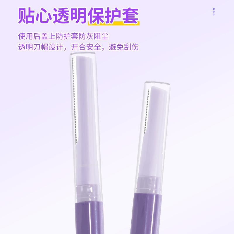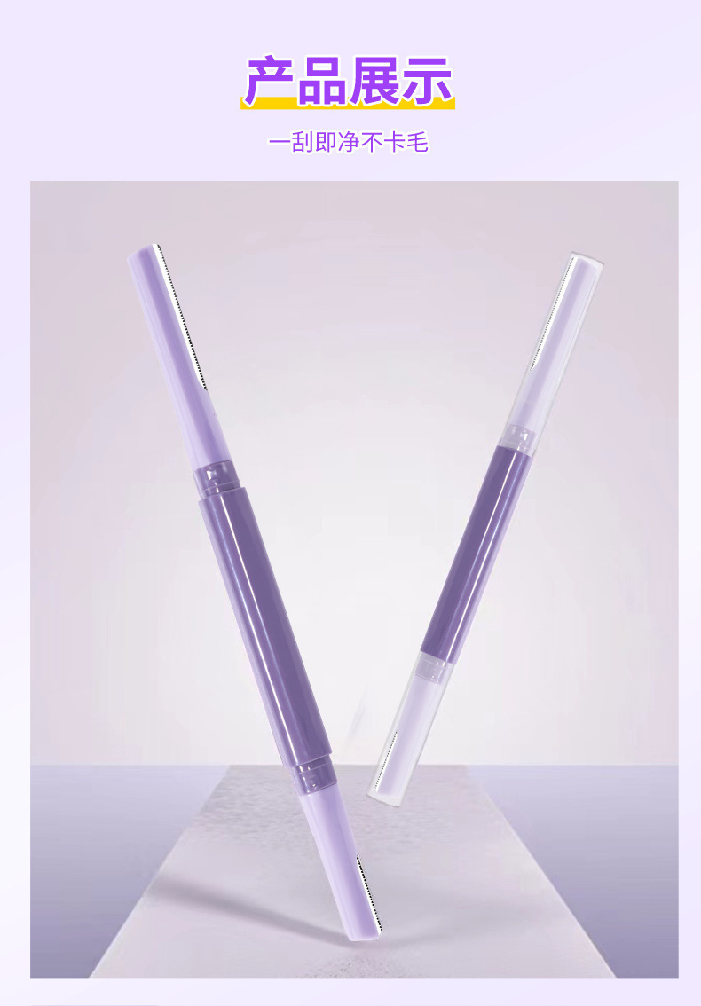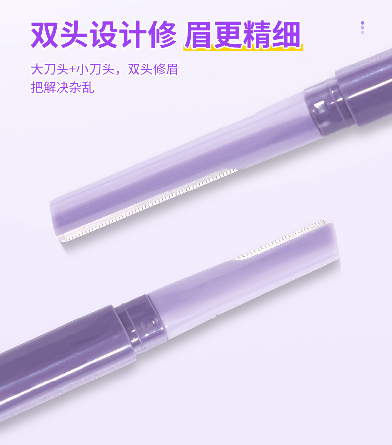Фиолетовый двусторонний триммер для бровей.; Два фиолетовых двусторонних триммера для бровей.; Двусторонний триммер для бровей — три упаковки; Двусторонний триммер для бровей — два пакета; Двусторонний триммер для бровей в индивидуальной упаковке, 1 шт.
