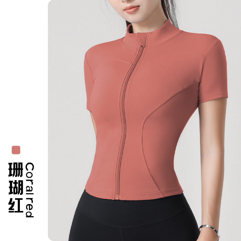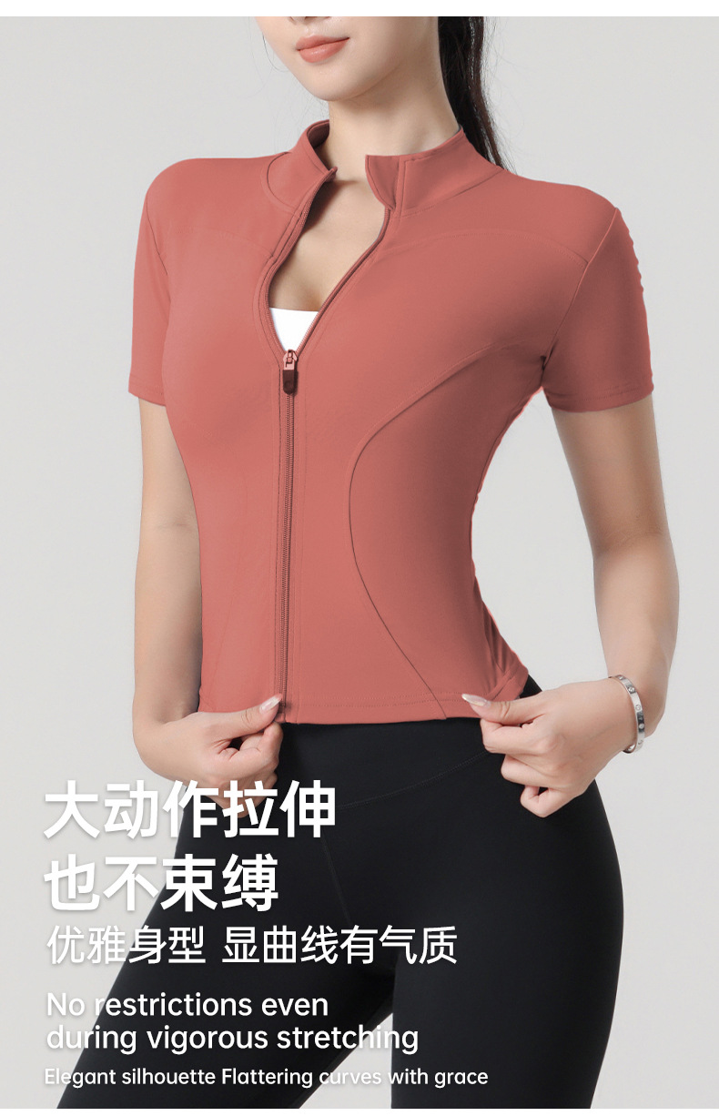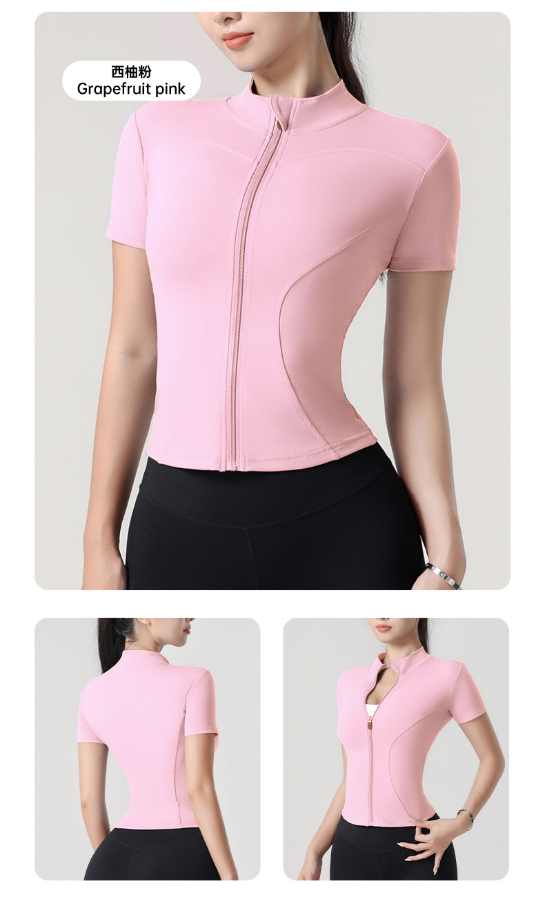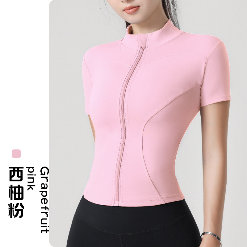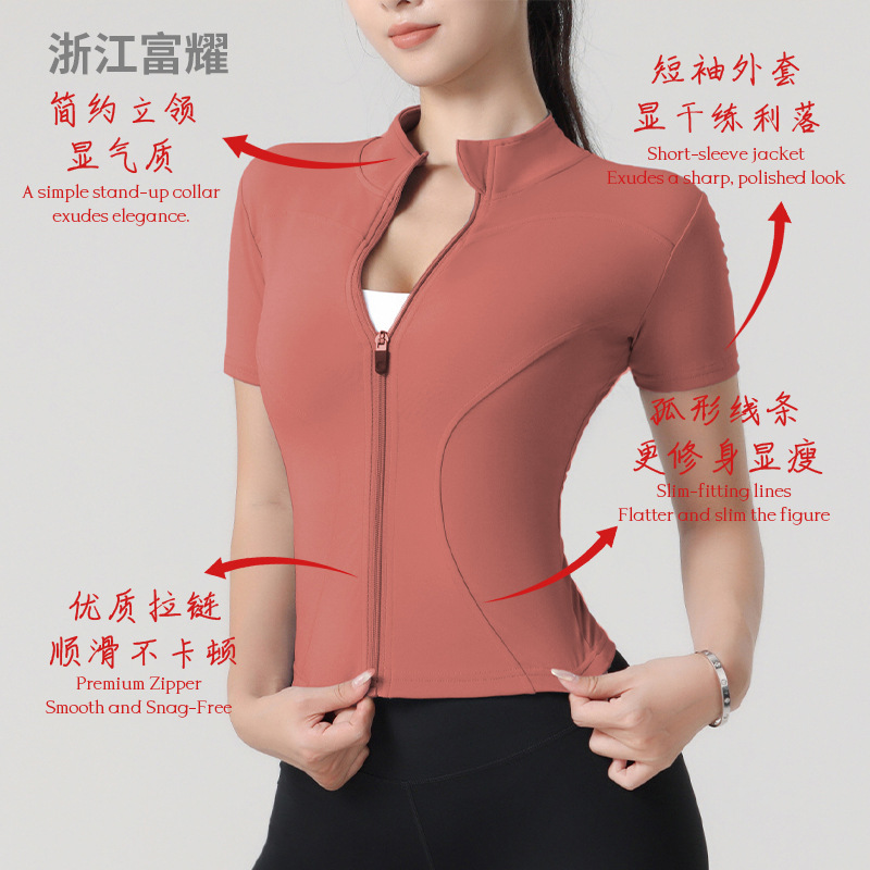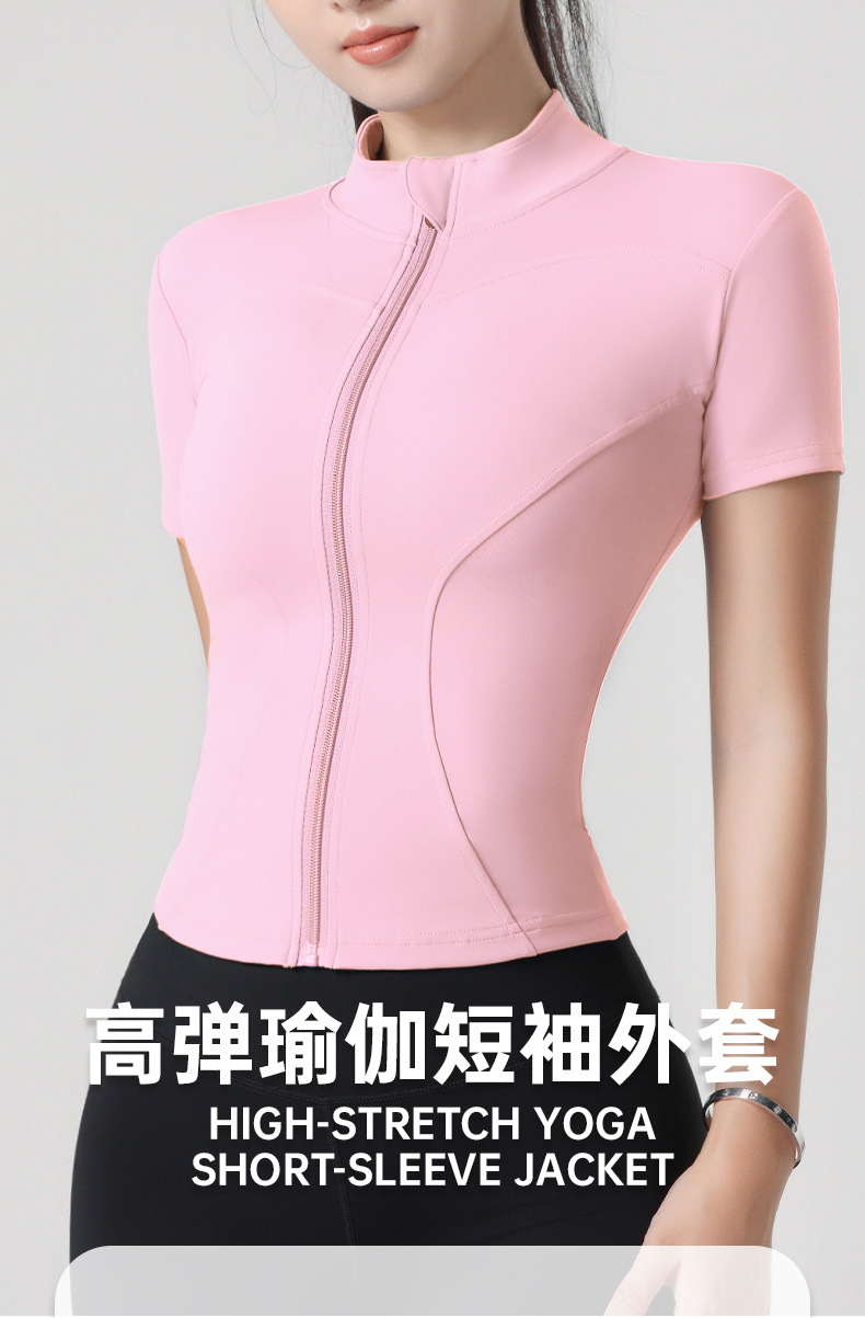 Спортивная куртка Fuyao с коротким рукавом, высокой эластичностью, розового цвета, с воротником-стойкой, облегающая, с эффектом «второй кожи», для фитнеса, для женщин