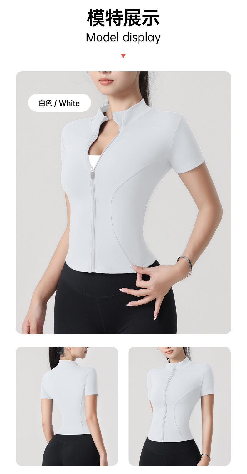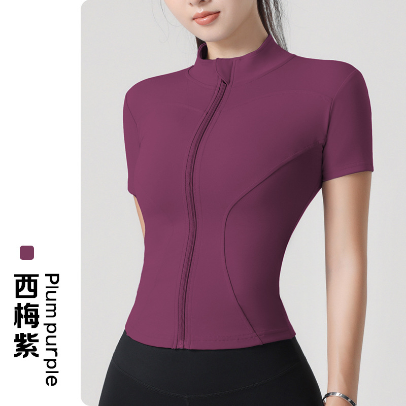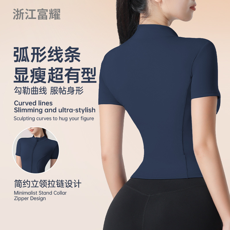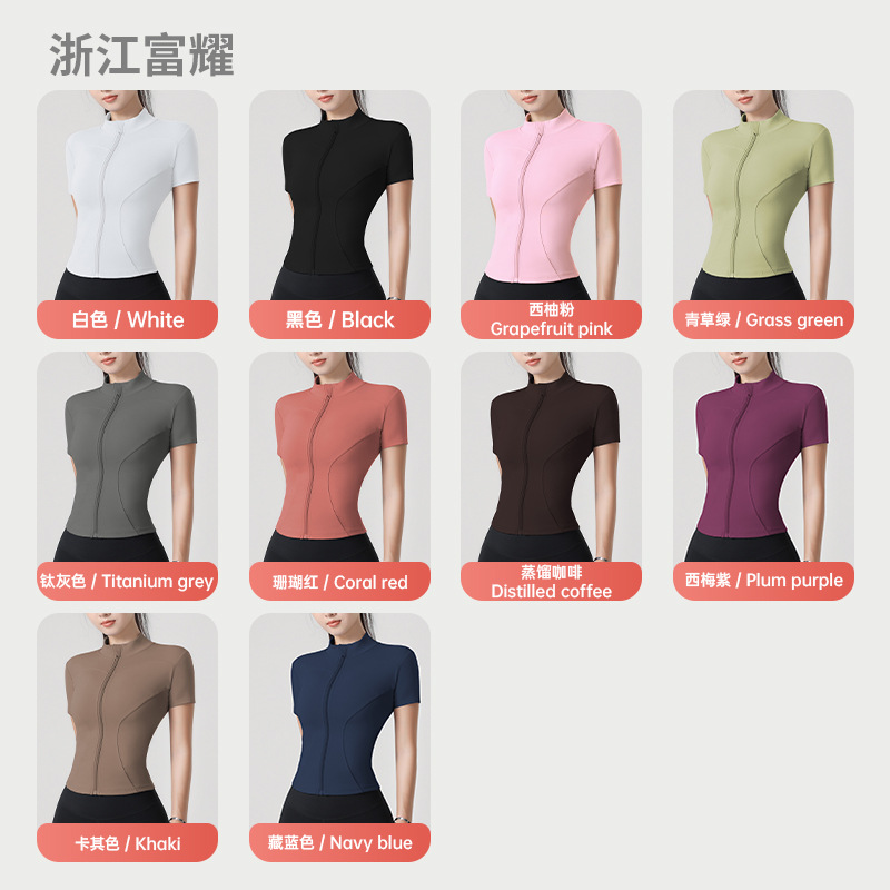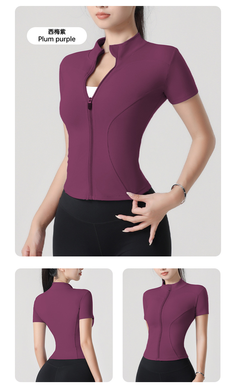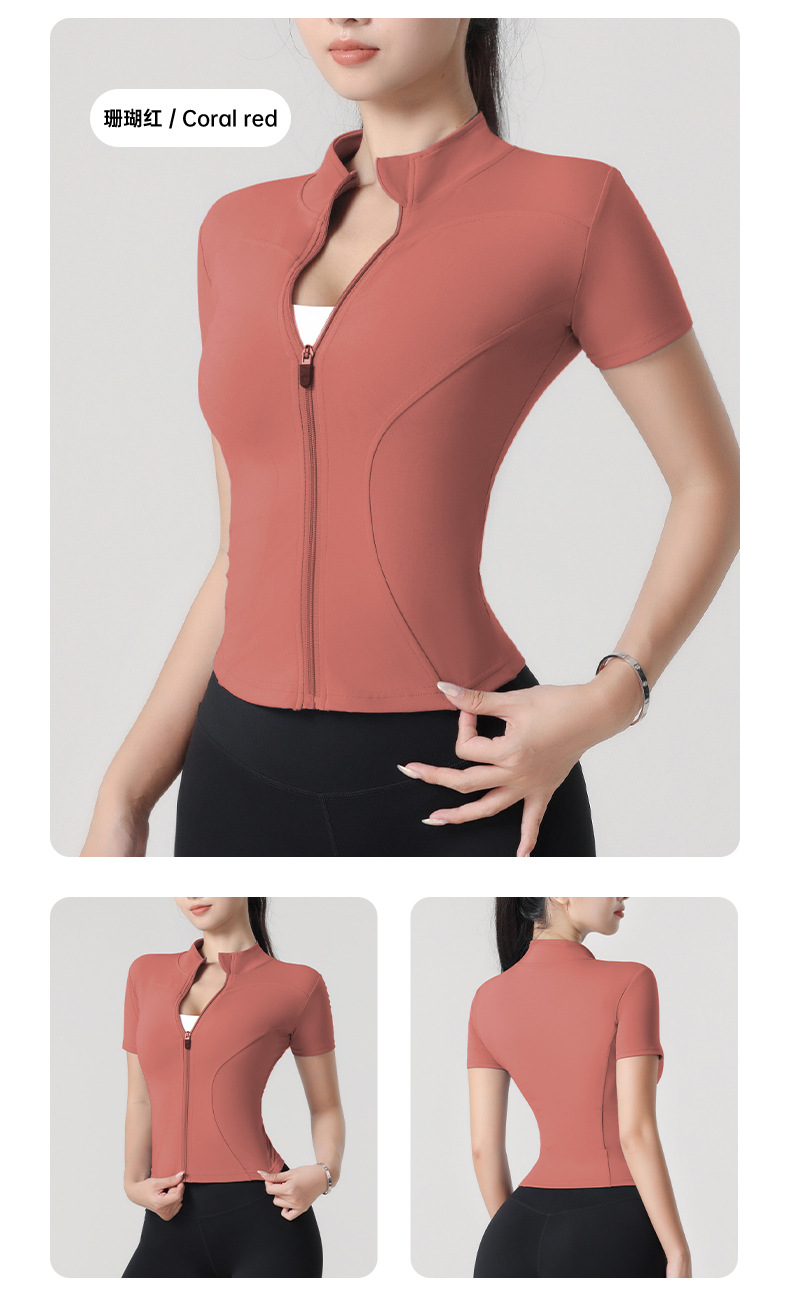 Спортивная куртка Fuyao с коротким рукавом, высокой эластичностью, розового цвета, с воротником-стойкой, облегающая, с эффектом «второй кожи», для фитнеса, для женщин
