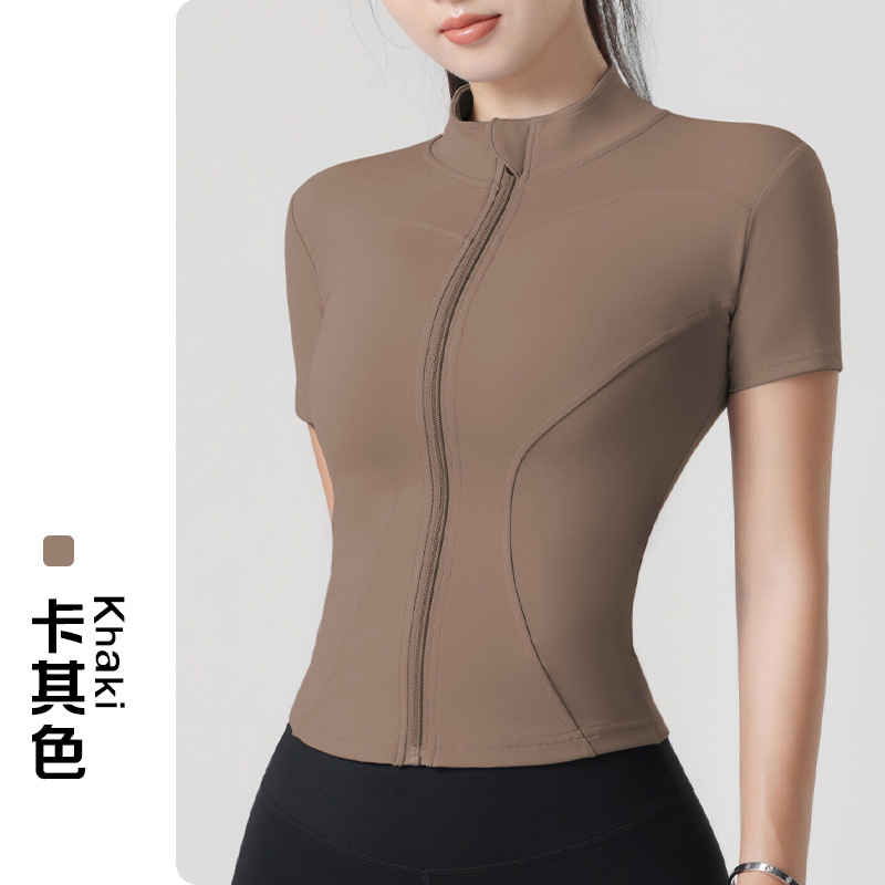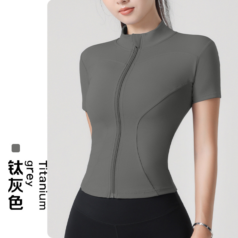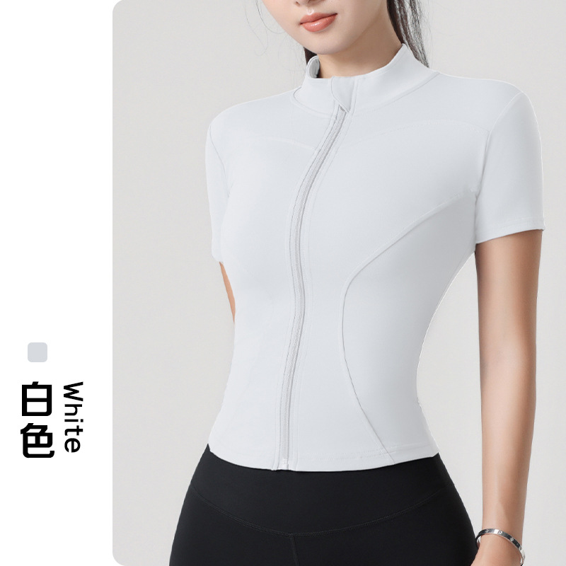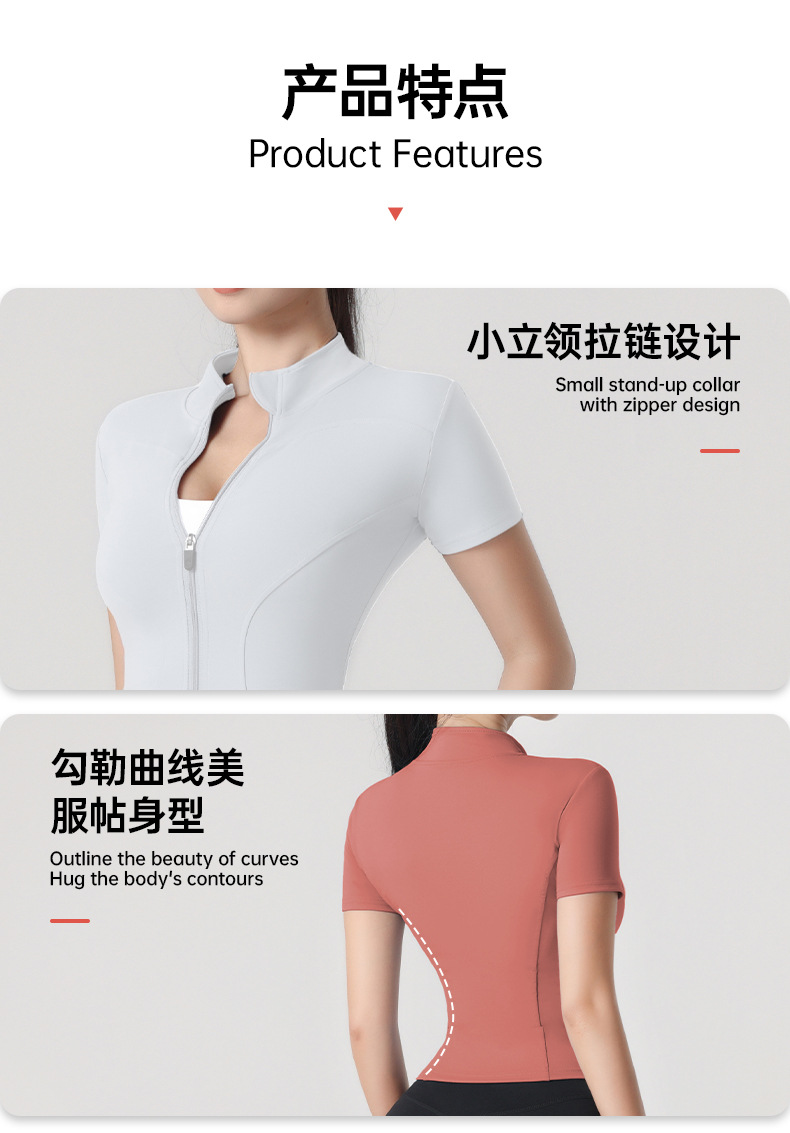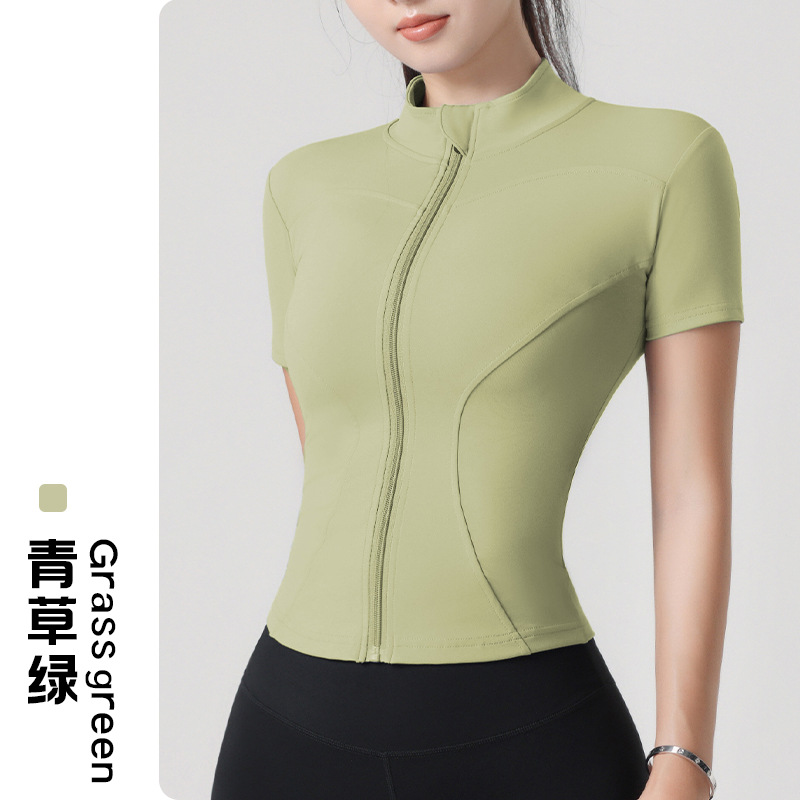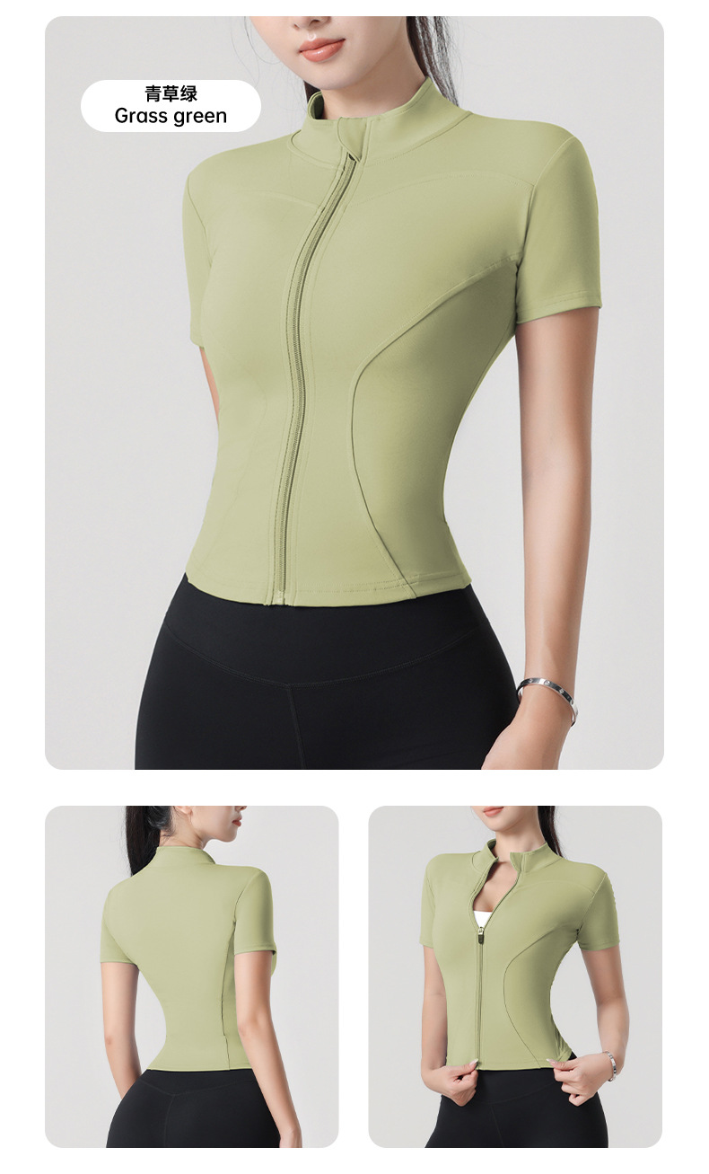 Спортивная куртка Fuyao с коротким рукавом, высокой эластичностью, розового цвета, с воротником-стойкой, облегающая, с эффектом «второй кожи», для фитнеса, для женщин