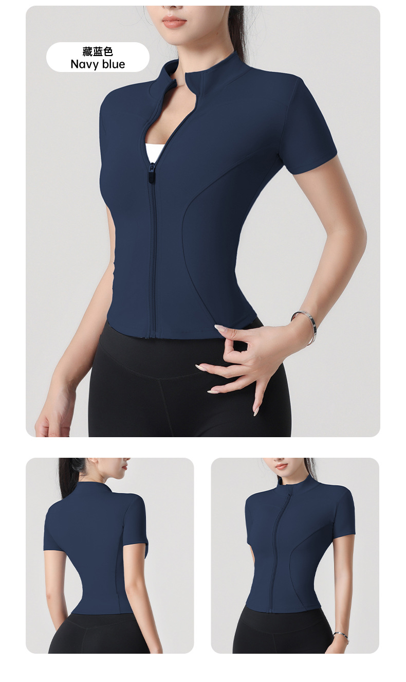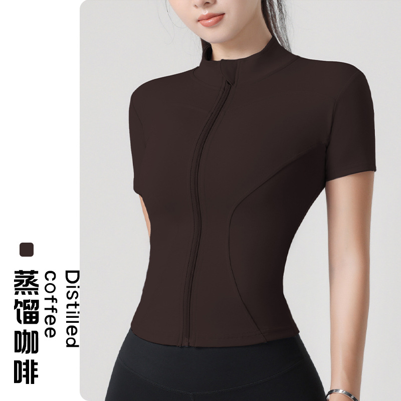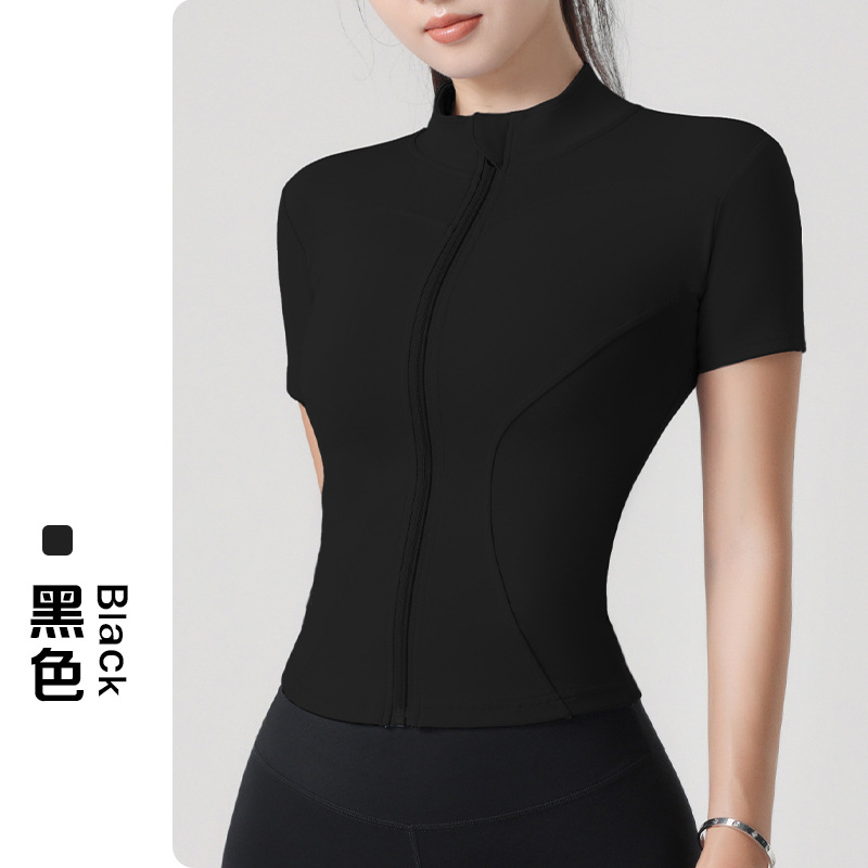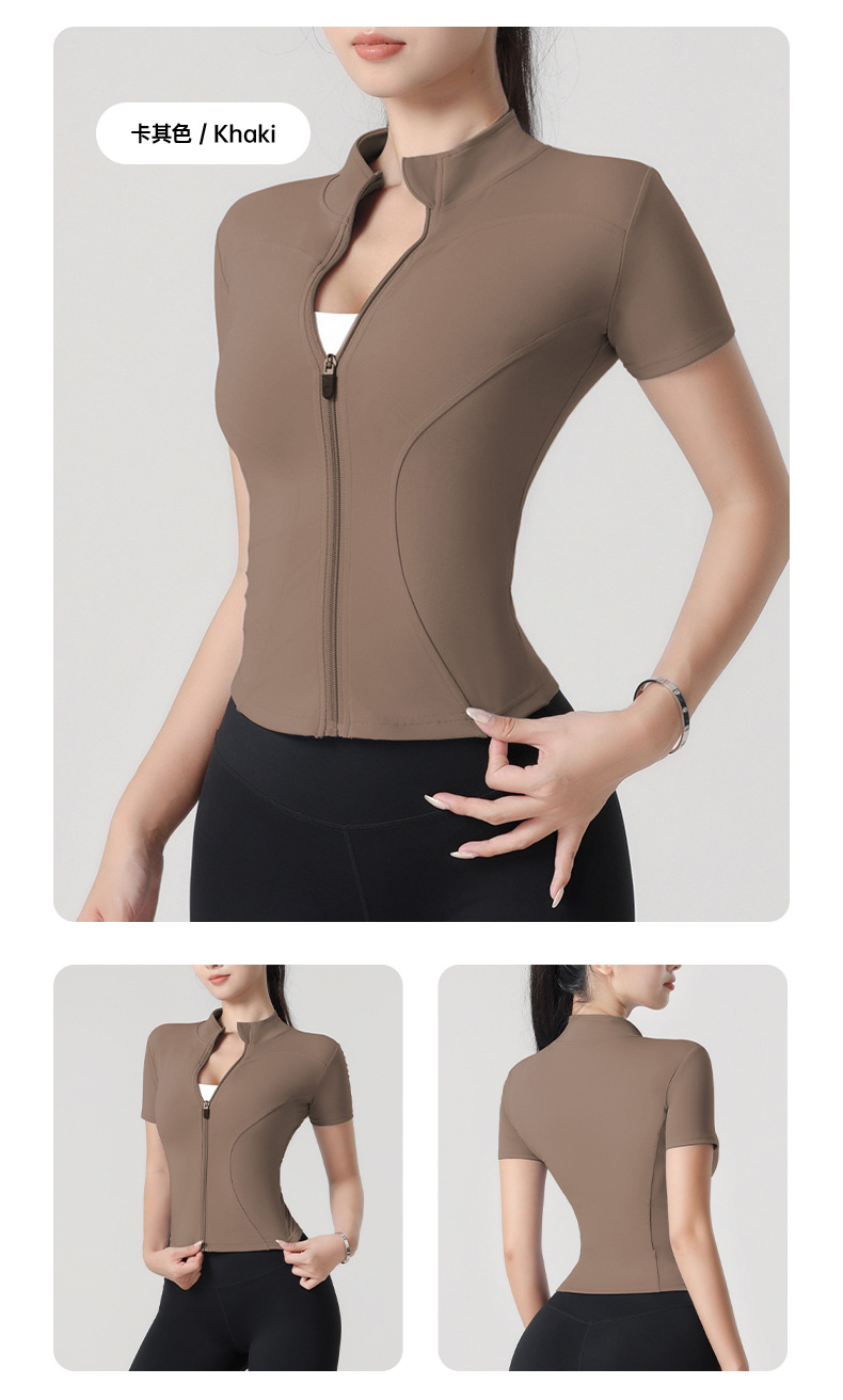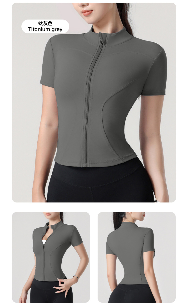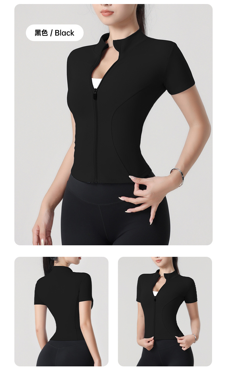 Спортивная куртка Fuyao с коротким рукавом, высокой эластичностью, розового цвета, с воротником-стойкой, облегающая, с эффектом «второй кожи», для фитнеса, для женщин