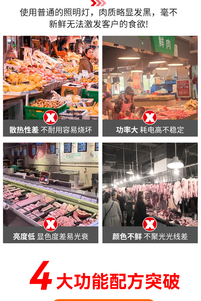 Новая национальная стандартная лампа полного спектра для свежего мяса для мясного рынка, супермаркета, лампа для свежего мяса, свинины, лампа белого света, лампа полного спектра для свежего мяса