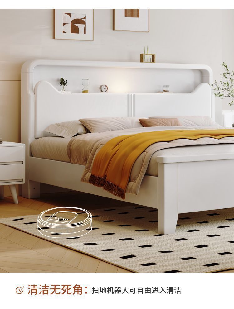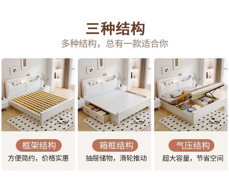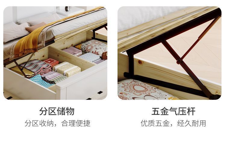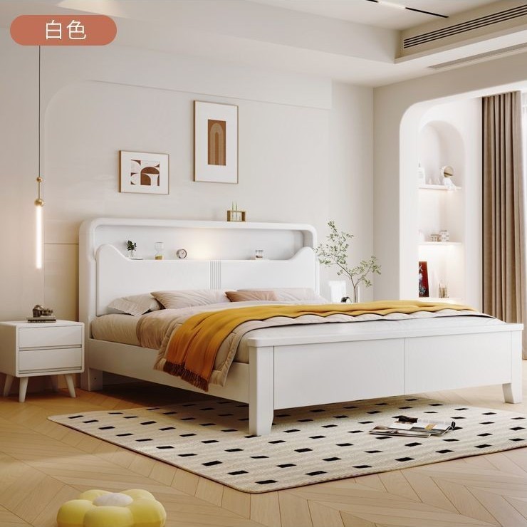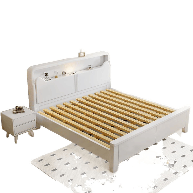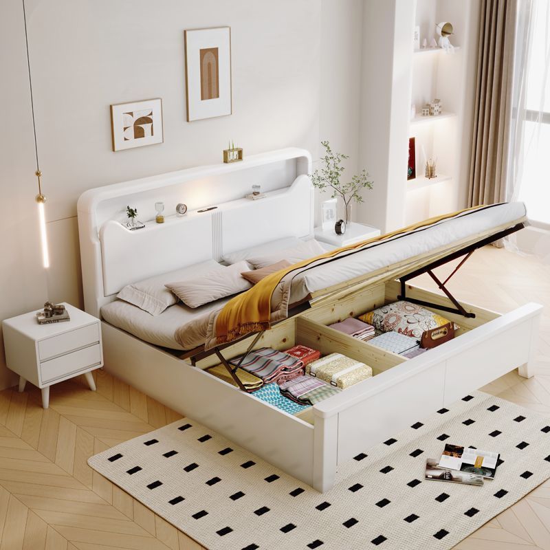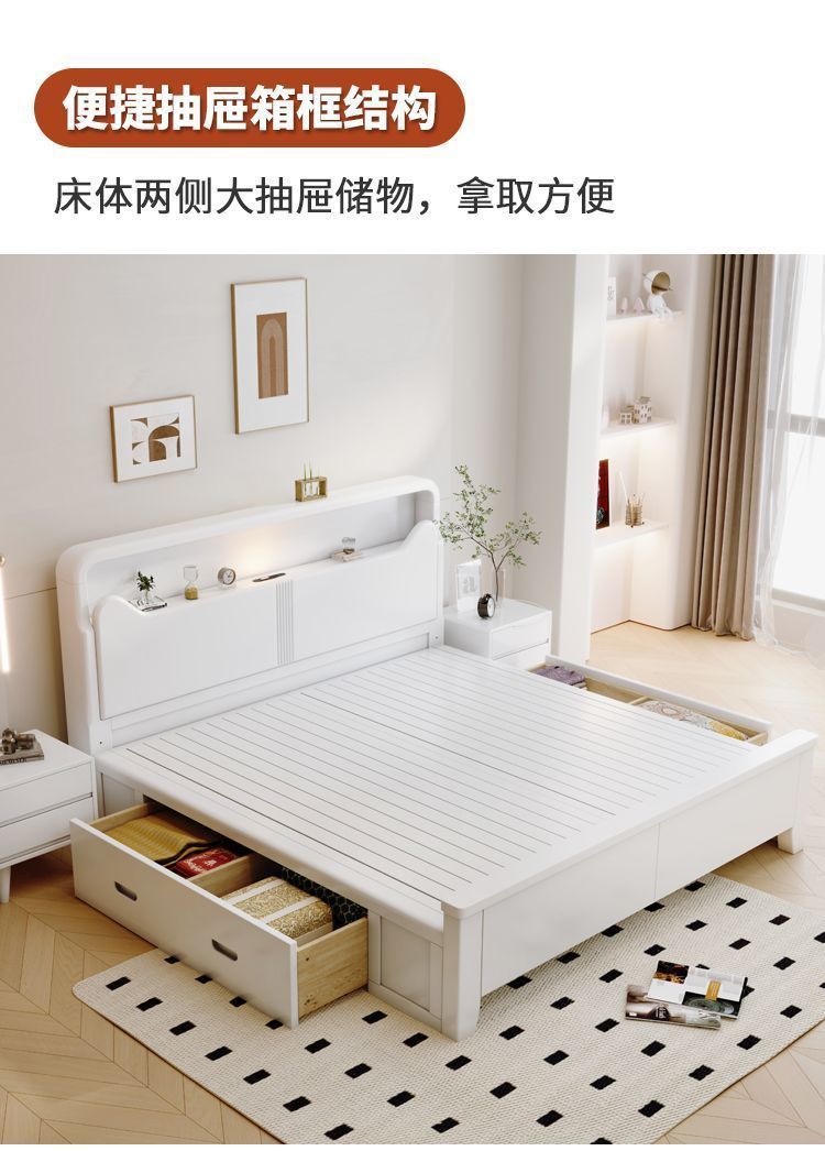 Современная белая кровать из массива дерева. Двуспальная кровать для спальни. Односпальная кровать с высоким ящиком для хранения, полный комплект мебели для спальни.