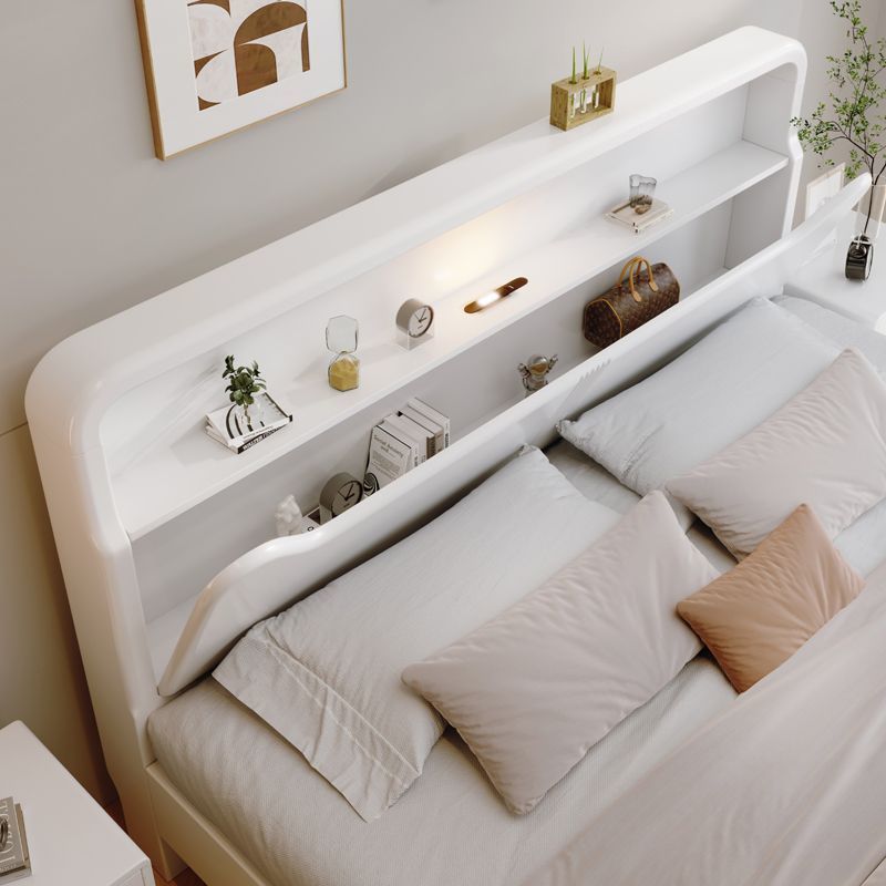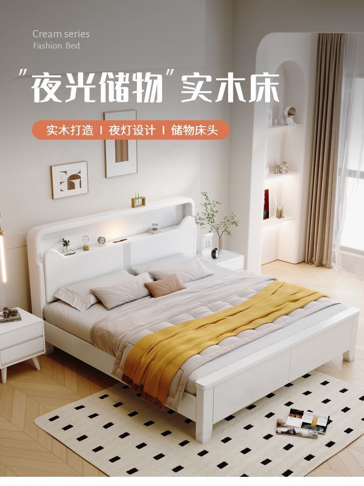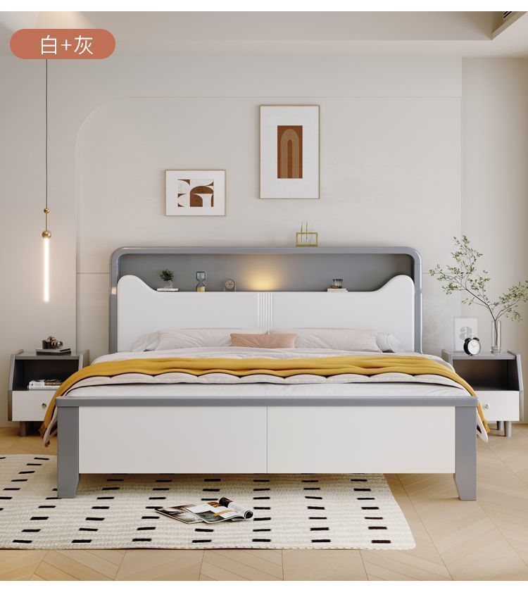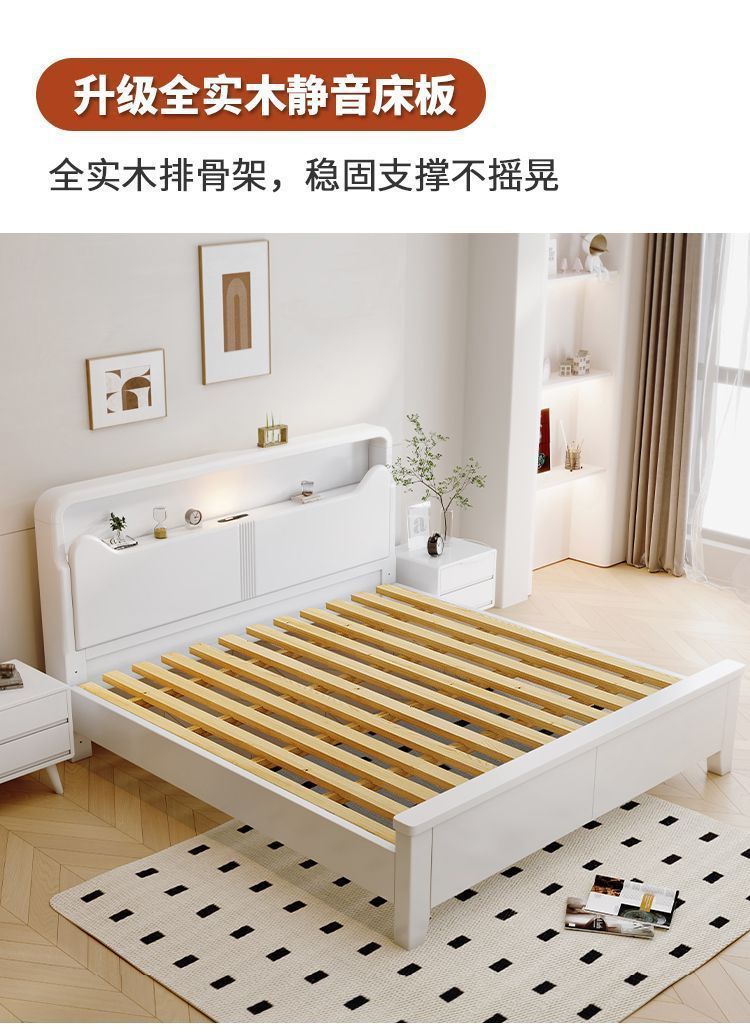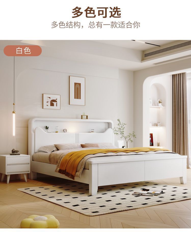 Современная белая кровать из массива дерева. Двуспальная кровать для спальни. Односпальная кровать с высоким ящиком для хранения, полный комплект мебели для спальни.