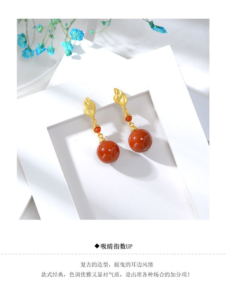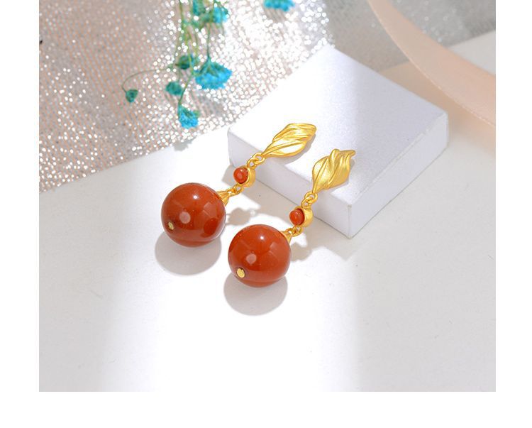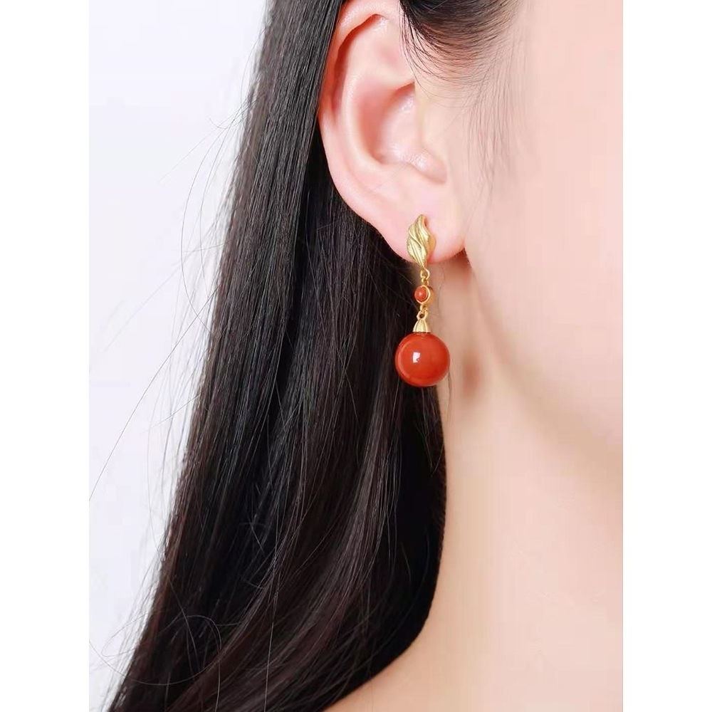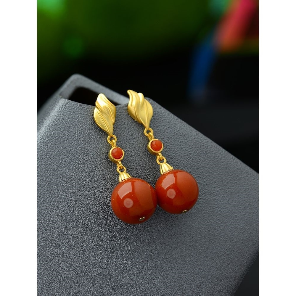 Серьги из красного агата с круглыми бусинами, короткие винтажные серьги для мам, женские серьги-подвески без боковых бриллиантов.