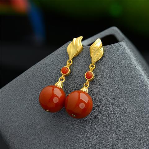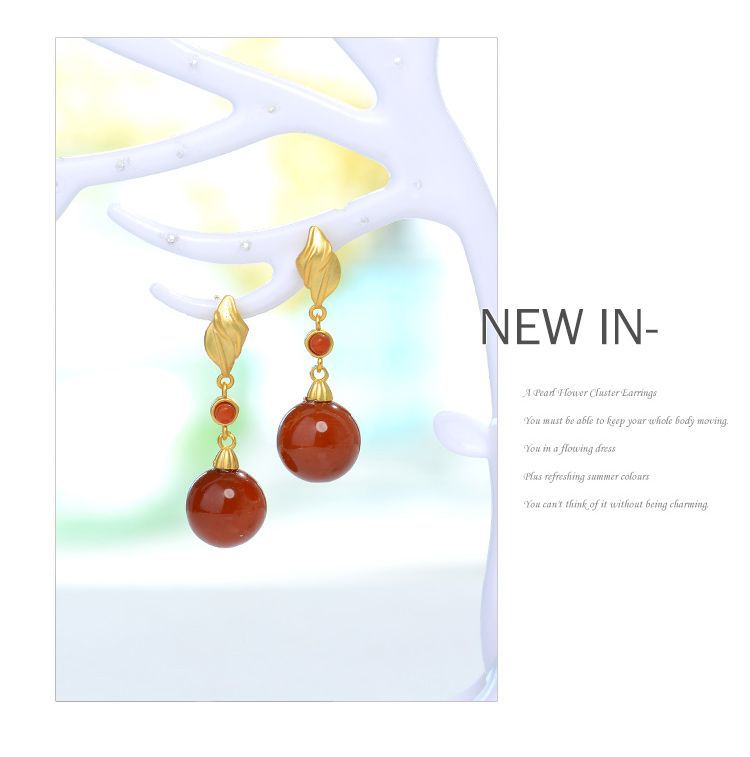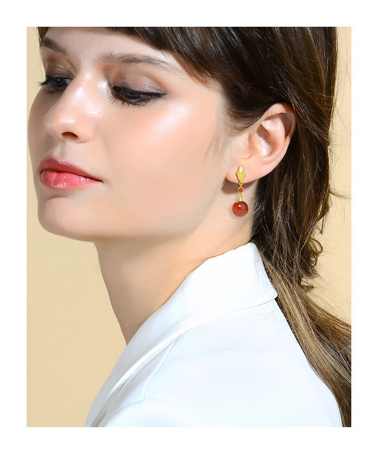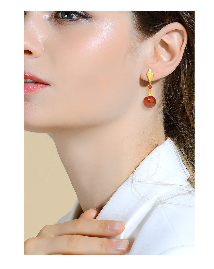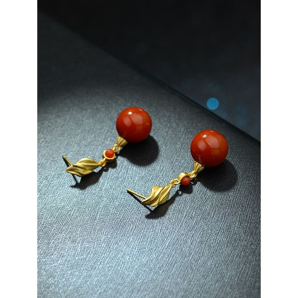 Серьги из красного агата с круглыми бусинами, короткие винтажные серьги для мам, женские серьги-подвески без боковых бриллиантов.