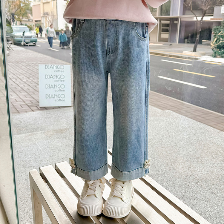 Детские брюки осень 2025, новый стиль, прямые брюки для малышей, стильные джинсы, широкие брюки для детей, осенний стиль