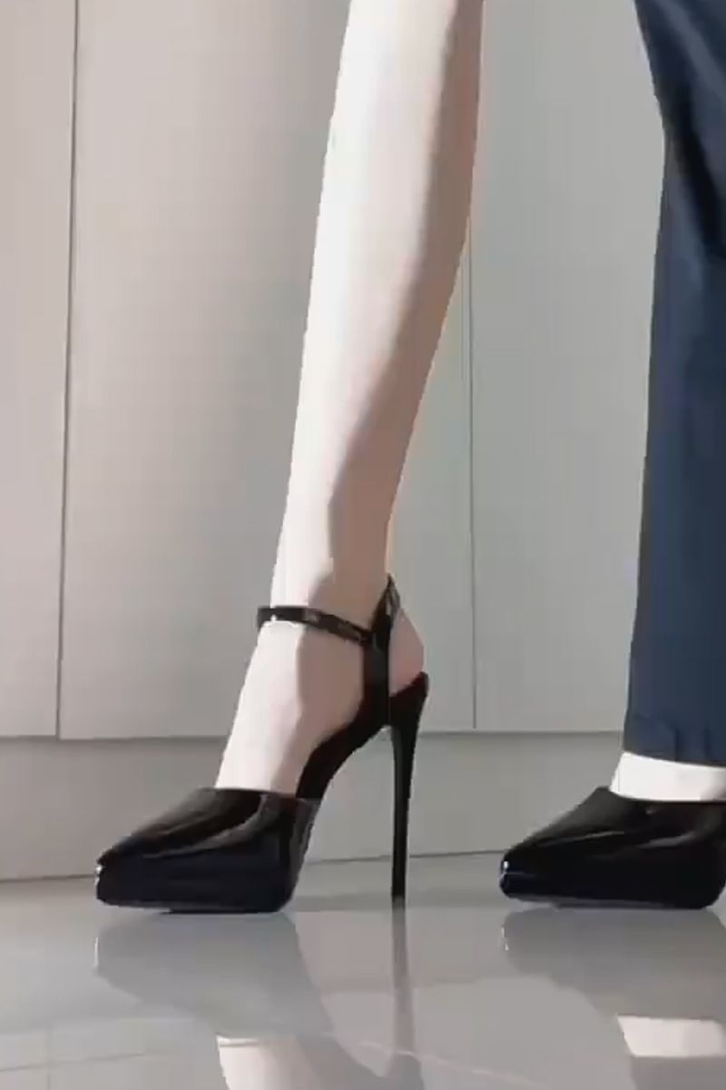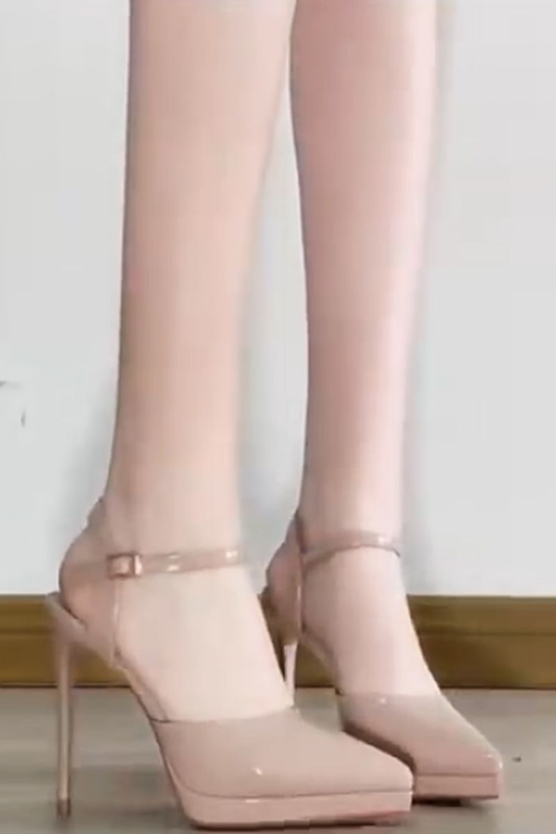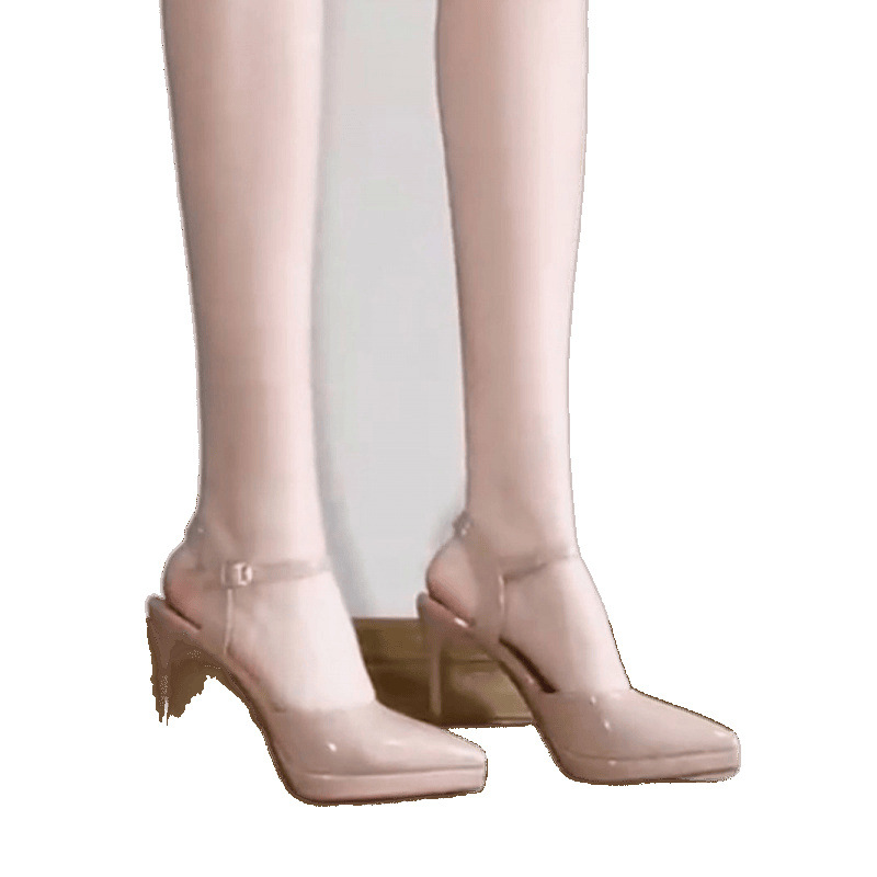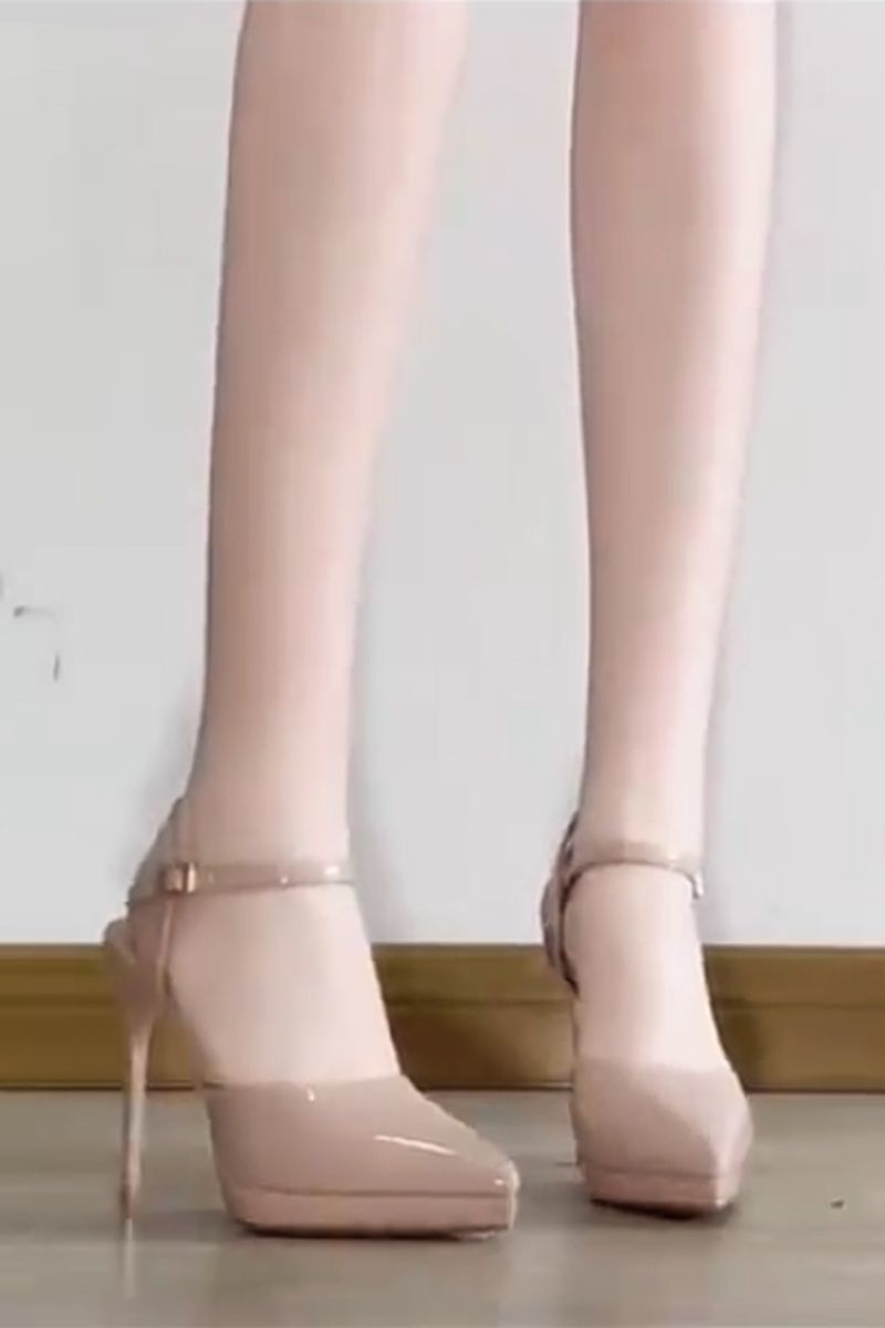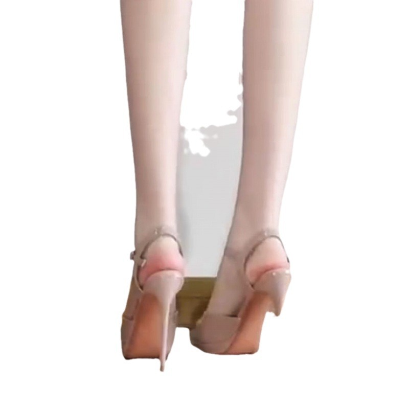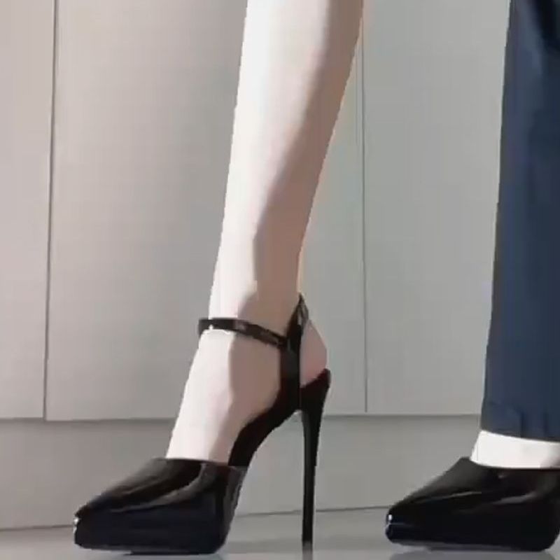 ~Кожаная версия~Водонепроницаемые туфли на высоком каблуке с пряжкой в одну линию, новые стильные сандалии Baotou, туфли на шпильке с острым носком для маленьких людей 11