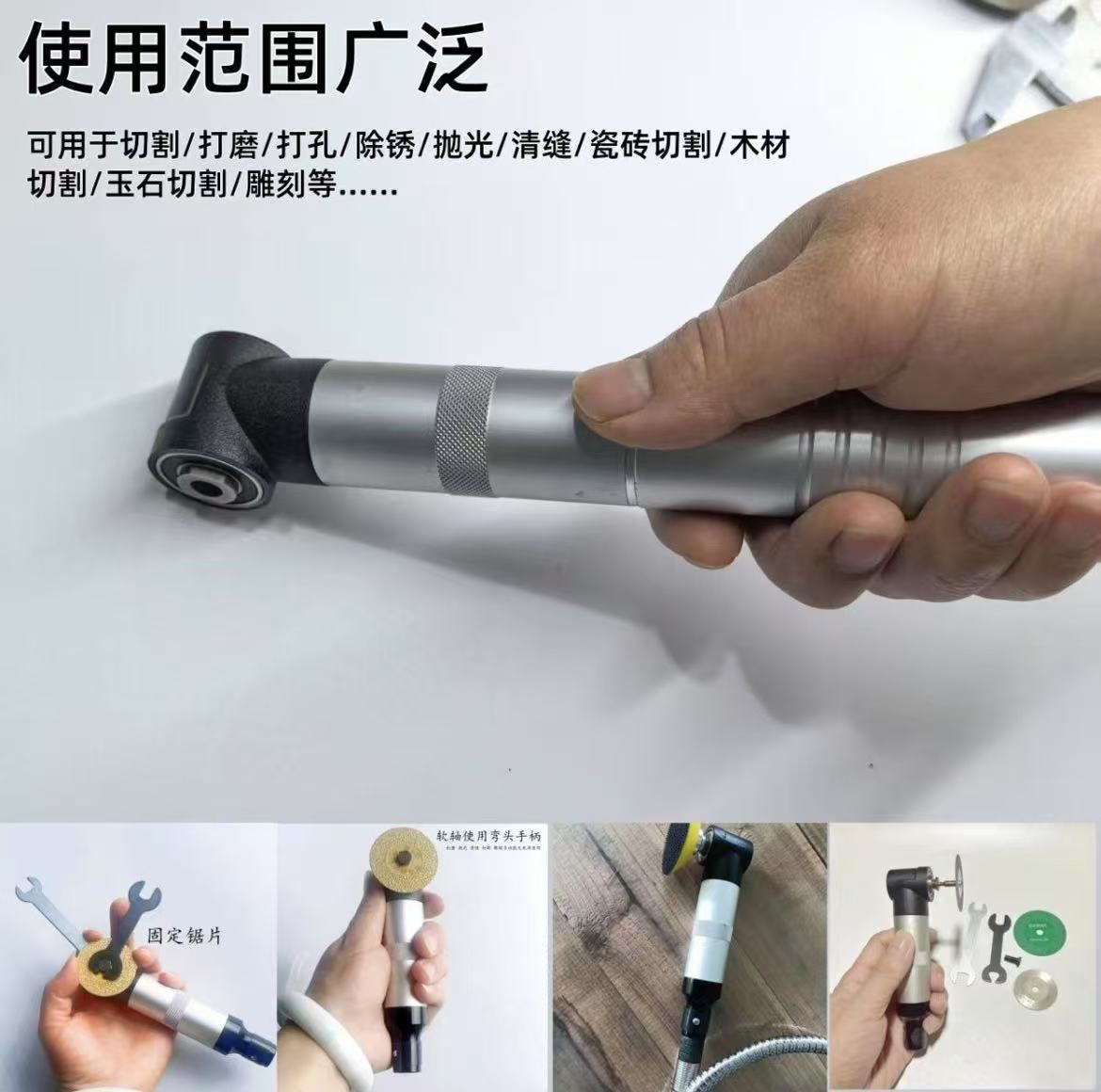 高功率大扭力,可用于瓷砖美缝清缝开槽切割,模具打磨抛光,石材切割打磨雕刻,玉石开窗去皮,金属除锈抛光等多种作业。
