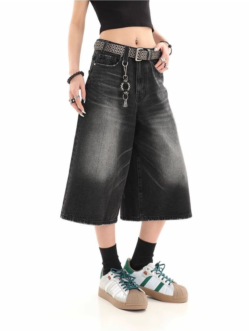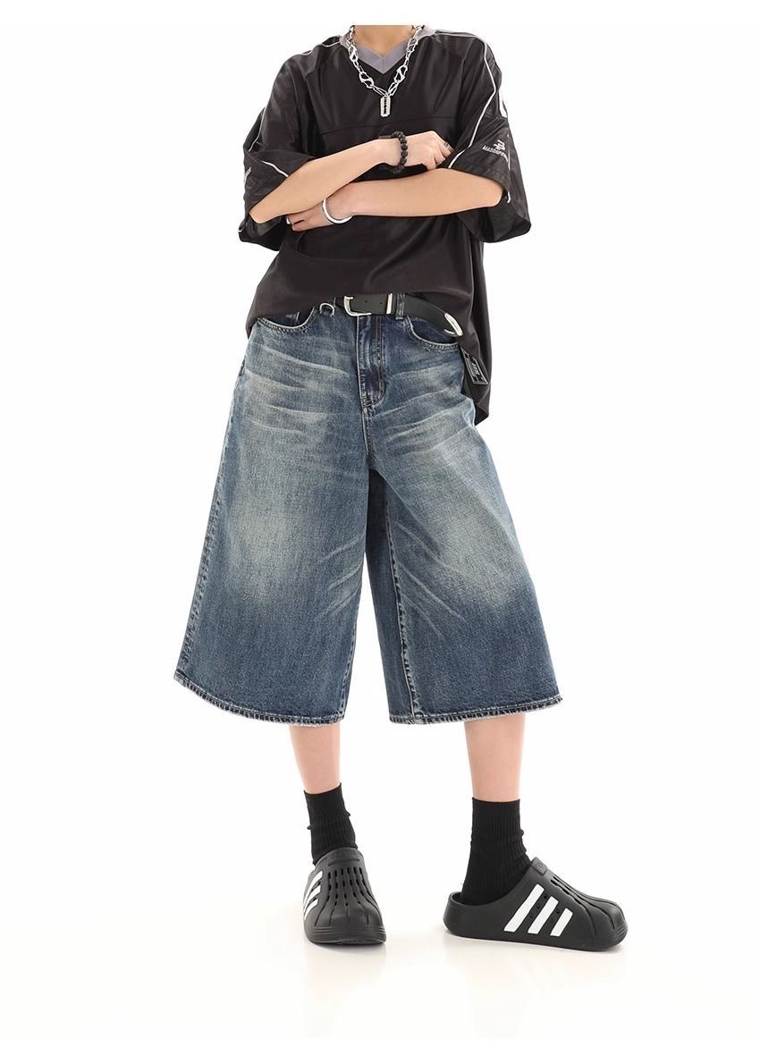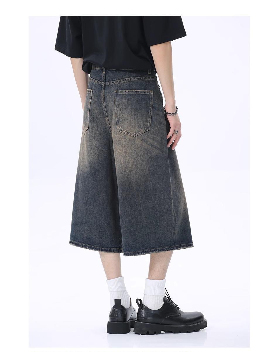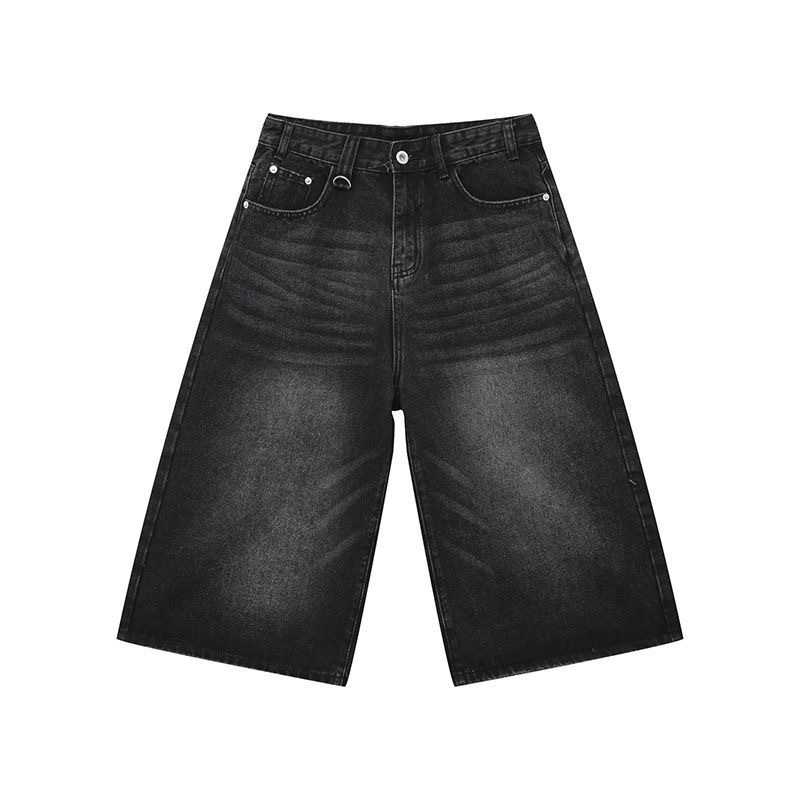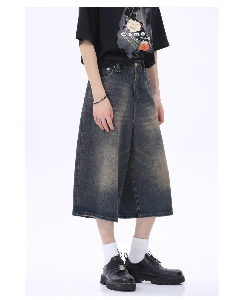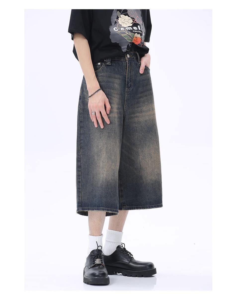 Мужские укороченные джинсовые шорты свободного силуэта в американском стиле ретро, летние широкие брюки средней длины в уличном стиле