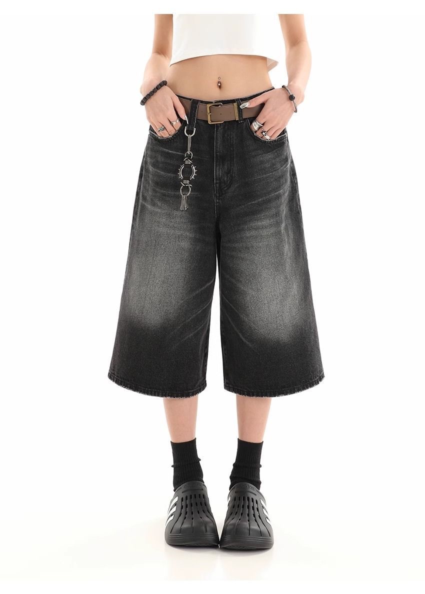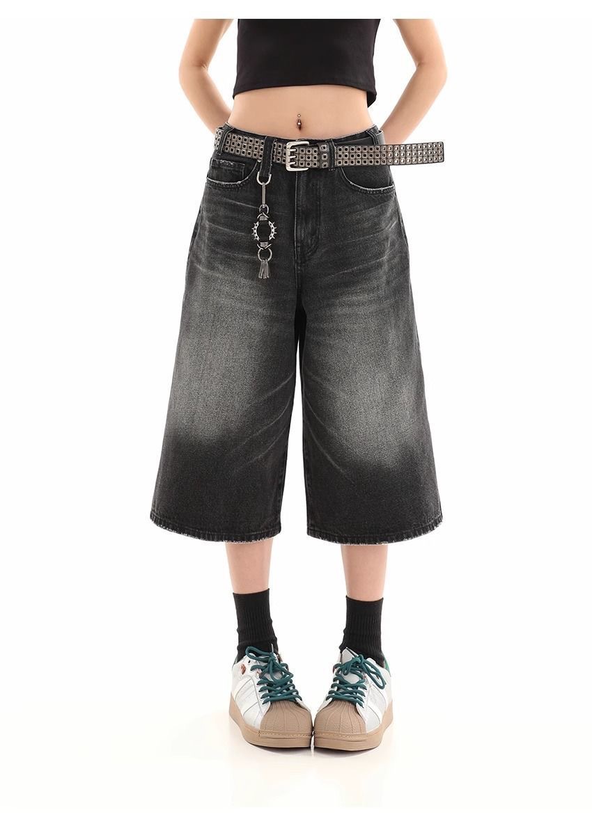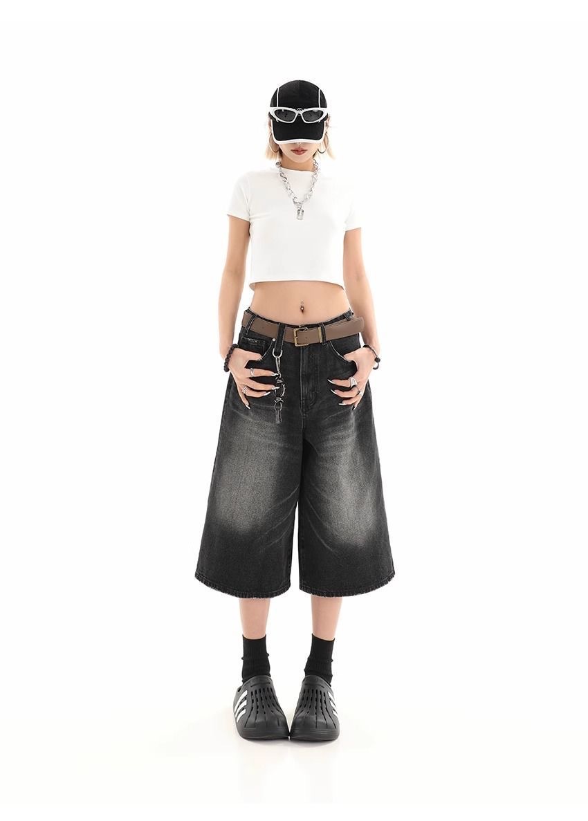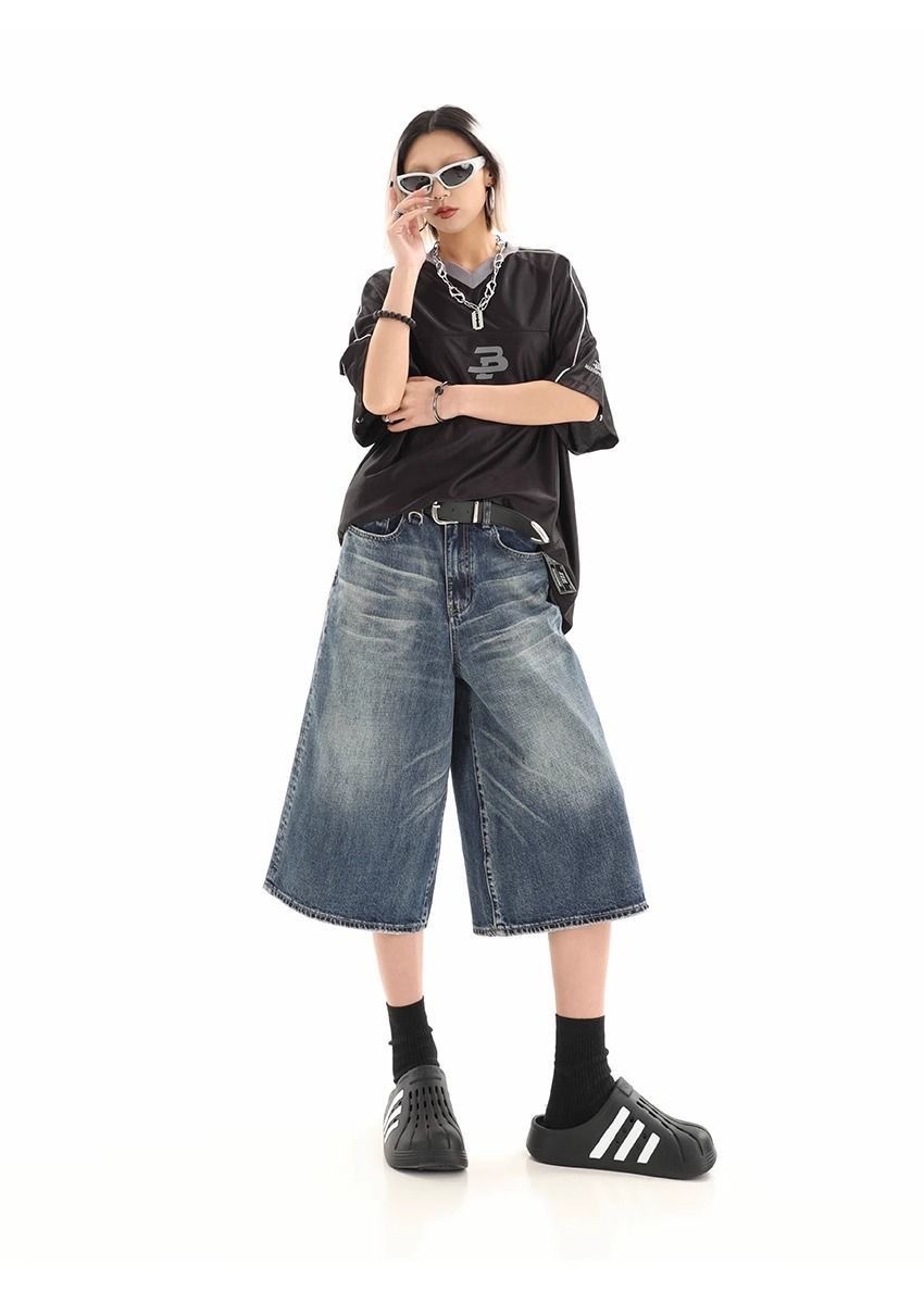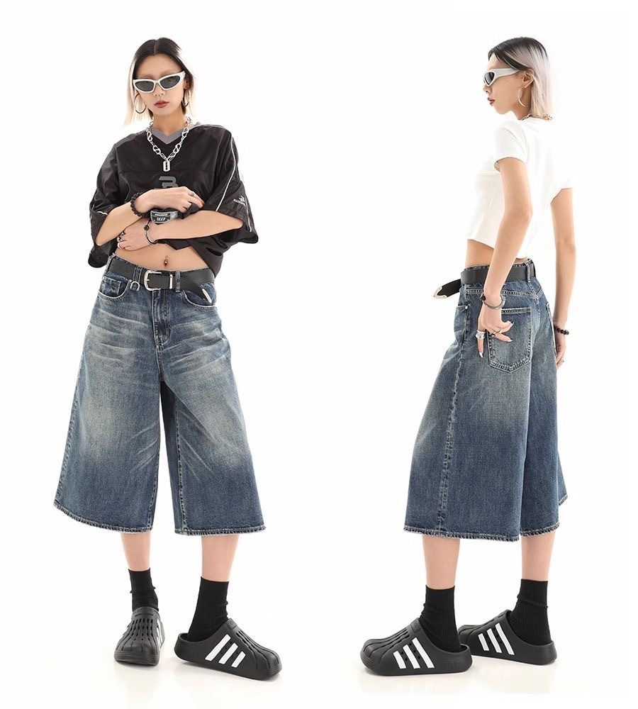 Мужские укороченные джинсовые шорты свободного силуэта в американском стиле ретро, летние широкие брюки средней длины в уличном стиле