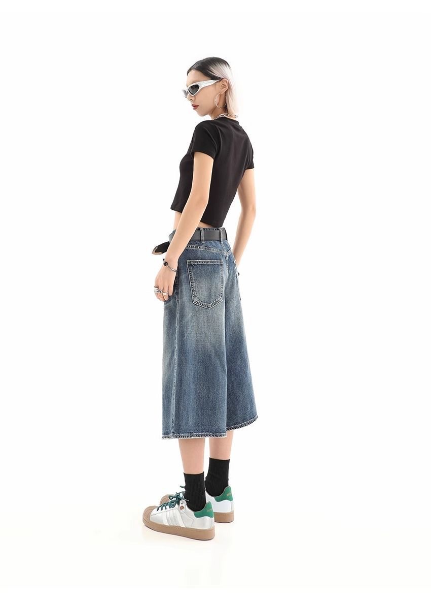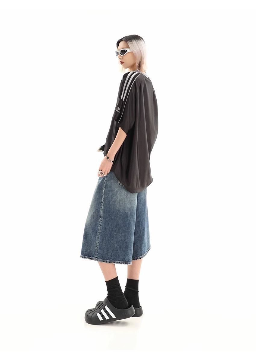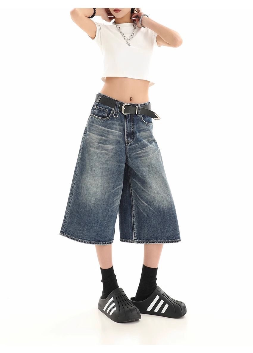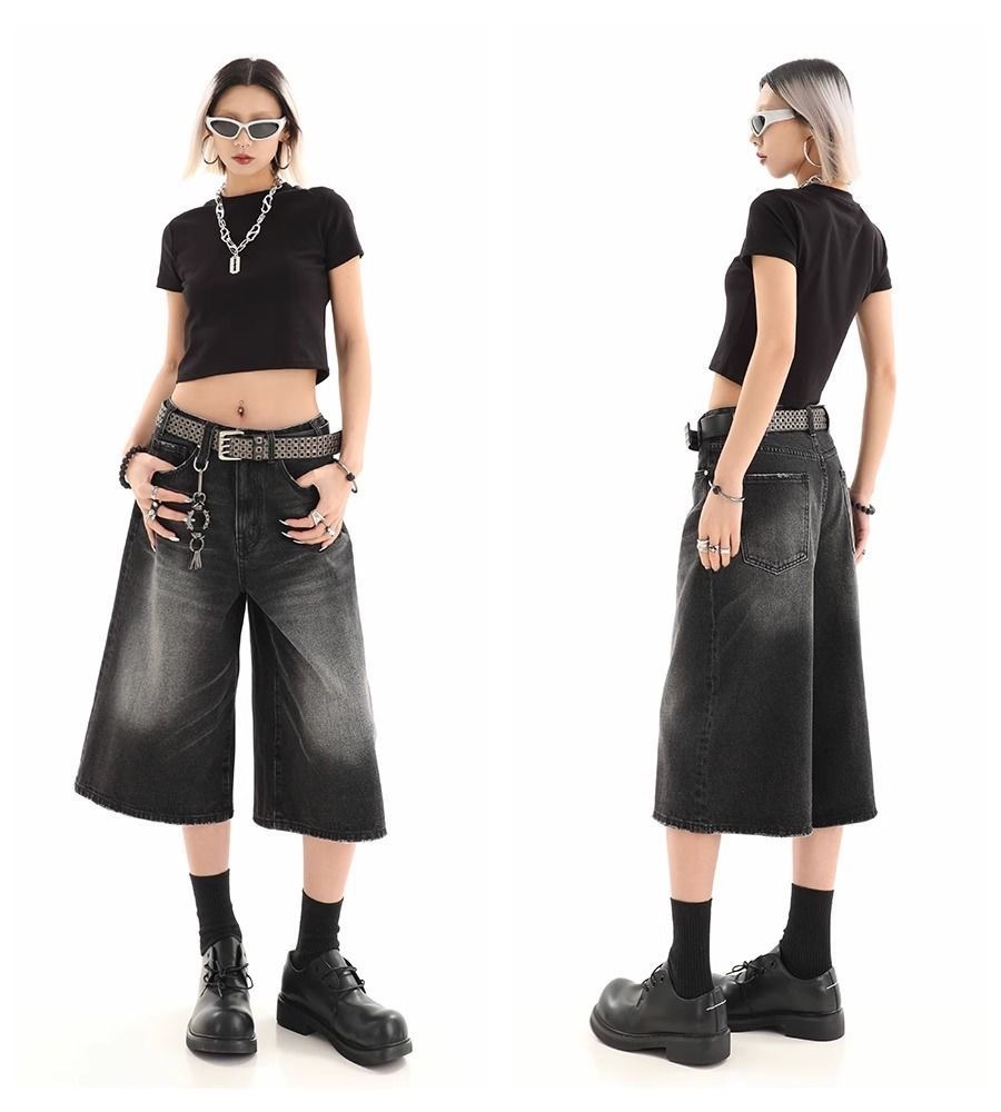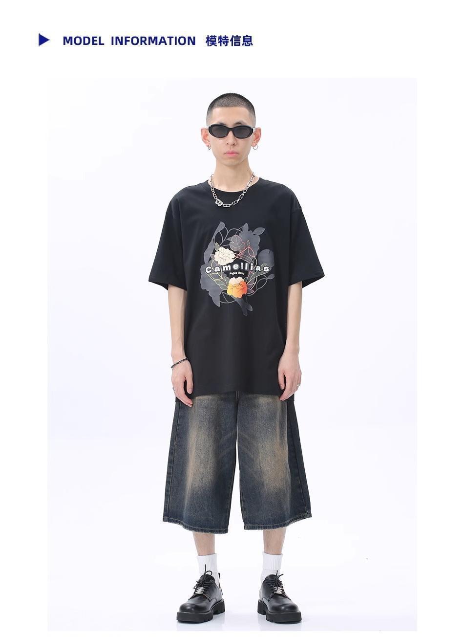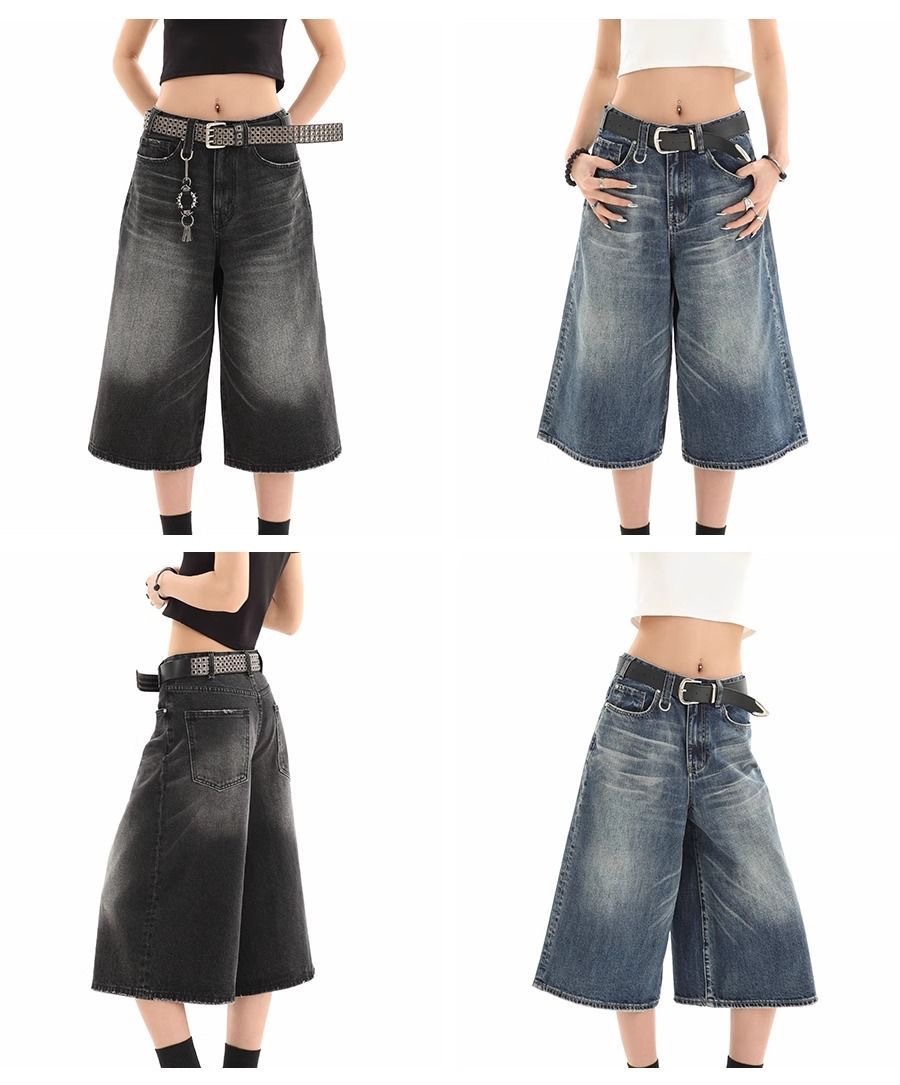 Мужские укороченные джинсовые шорты свободного силуэта в американском стиле ретро, летние широкие брюки средней длины в уличном стиле