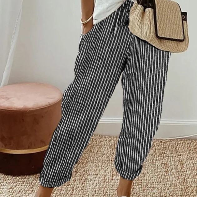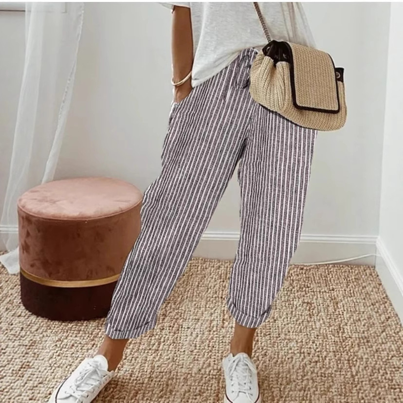 Новые женские брюки TEMU Amazon 2026 года в европейском и американском стиле, с полосатым принтом, карманами, модные, повседневные, свободные, длинные брюки для женщин