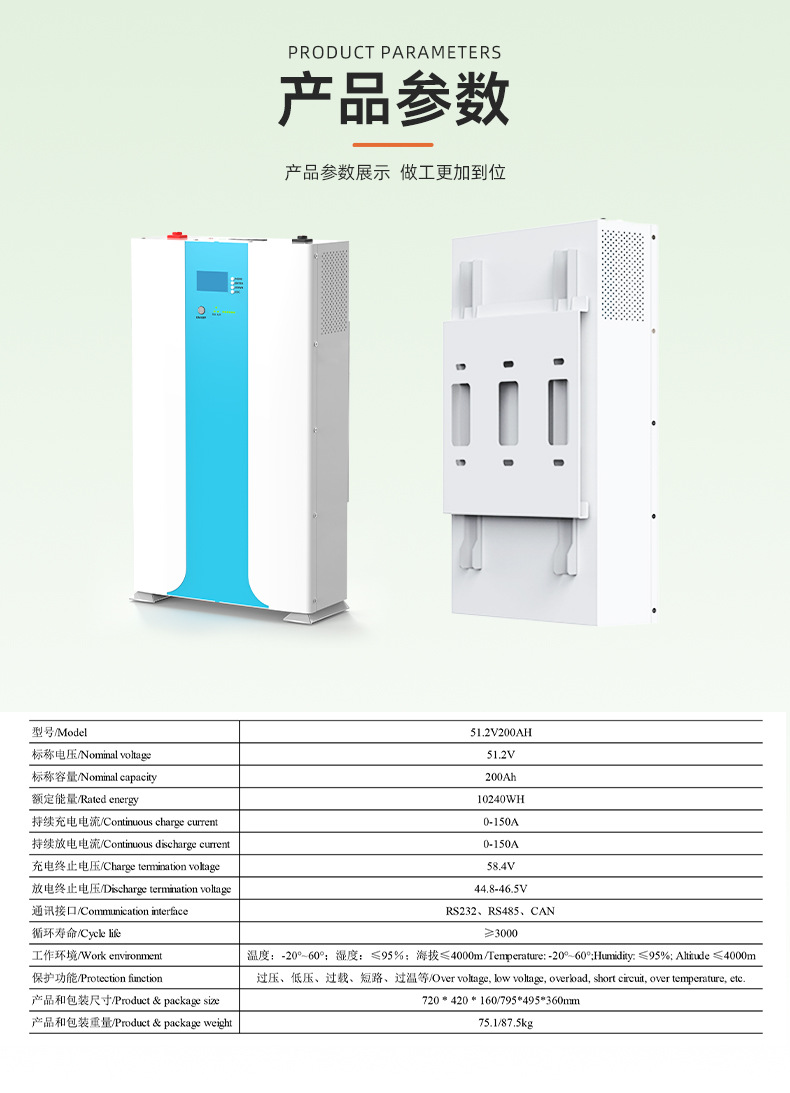 Аварийный источник питания, аккумуляторная батарея для хранения энергии, 10 градусов, 51,2 В, 200 Ач, железо-литиевый аккумулятор, домашний настенный аккумуляторный блок