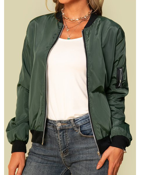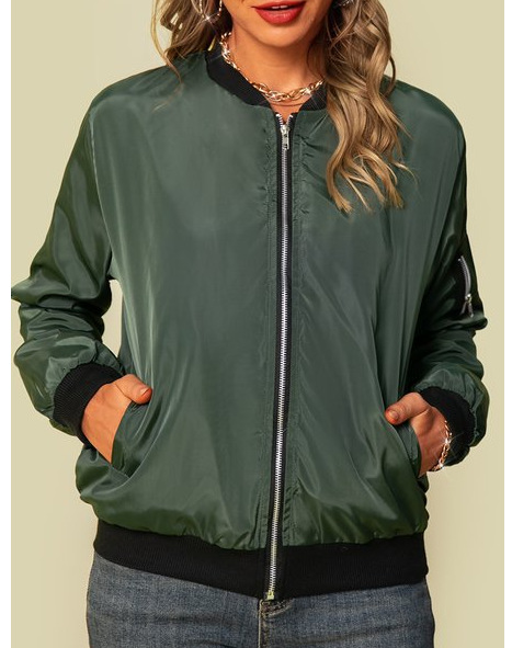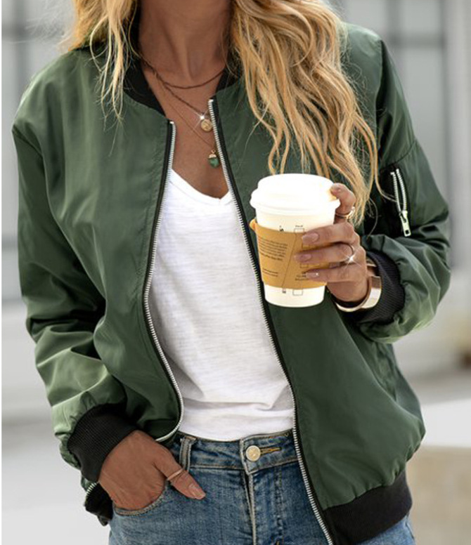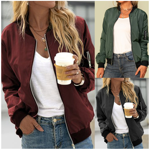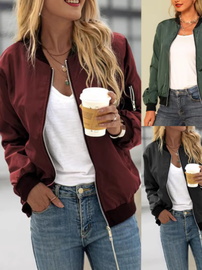 Повседневная куртка через границу, женская одежда AliExpress 2024, осенняя новая однотонная европейская и американская модная верхняя куртка на молнии для женщин