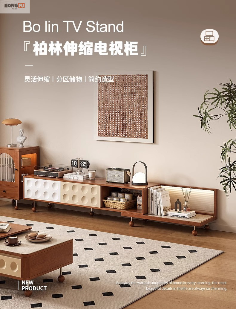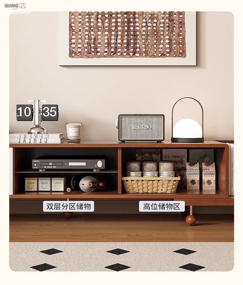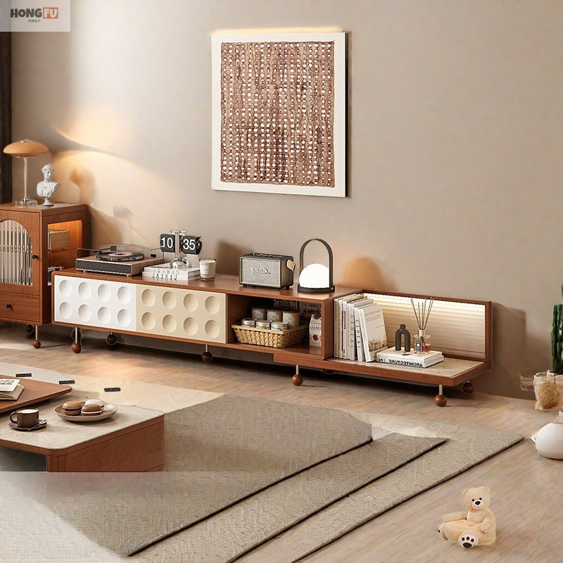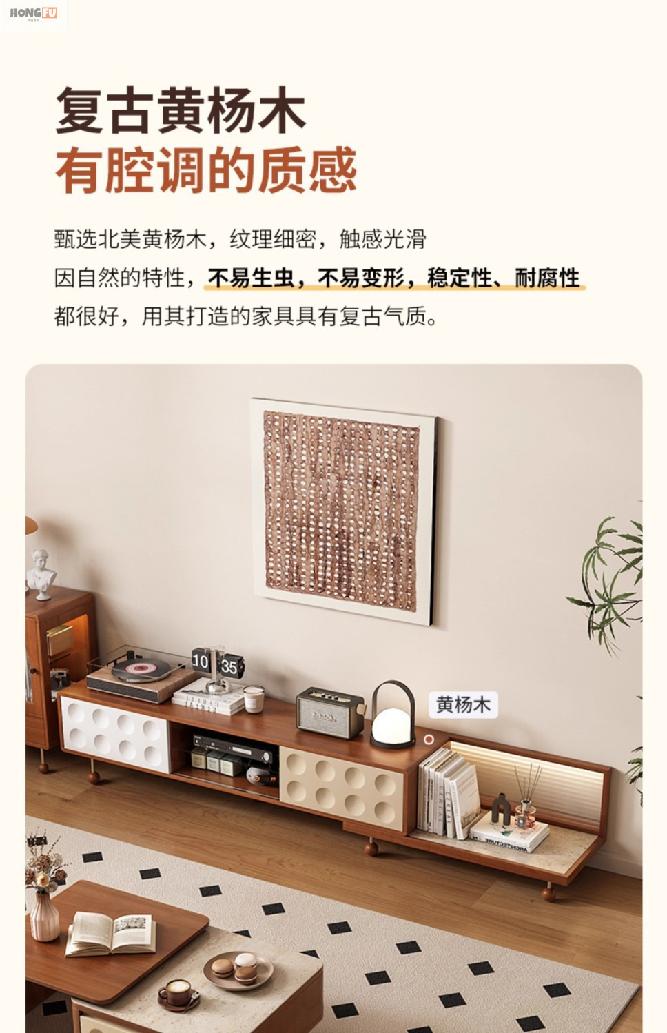 Hongfu Jiayue Новый скандинавский стиль ретро Выдвижной шкаф для хранения из цельного дерева Новый комбинированный видеокабинет с двигателем из цельного дерева