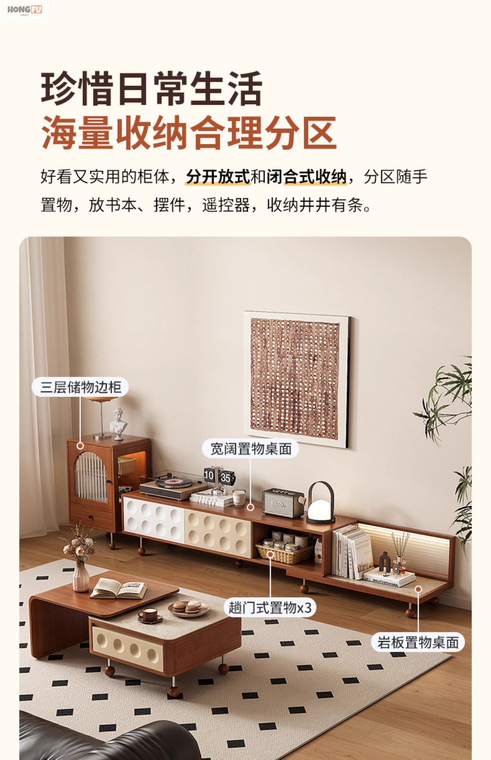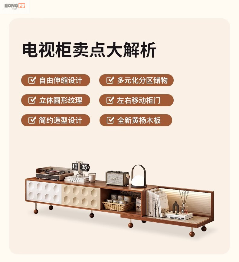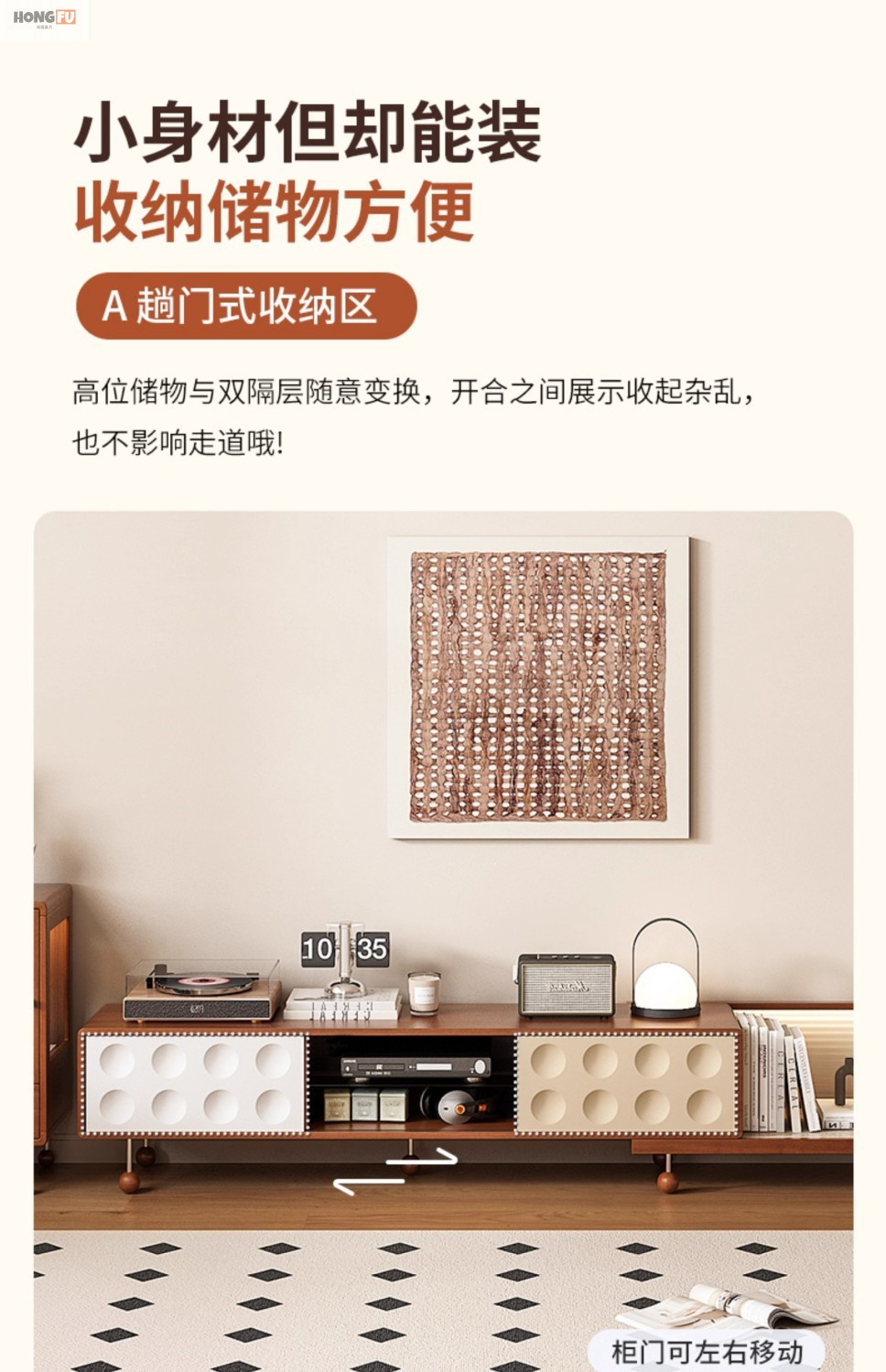 Hongfu Jiayue Новый скандинавский стиль ретро Выдвижной шкаф для хранения из цельного дерева Новый комбинированный видеокабинет с двигателем из цельного дерева