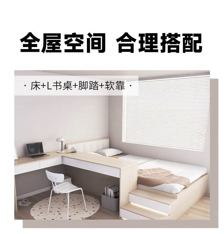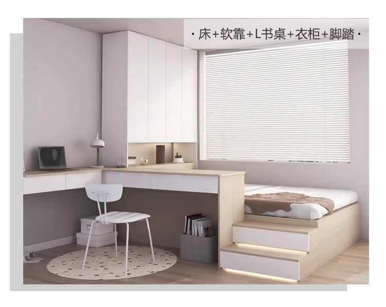 01 Мягкая кровать; 02 Мягкая кровать + 2.4m шкаф; 03 Мягкая кровать + стол L + подставка для ног; 04 Мягкая кровать + письменный стол + подставка для ног + шкаф; 05 Мягкая кровать + письменный стол + подставка для ног + шкаф + навесной шкаф