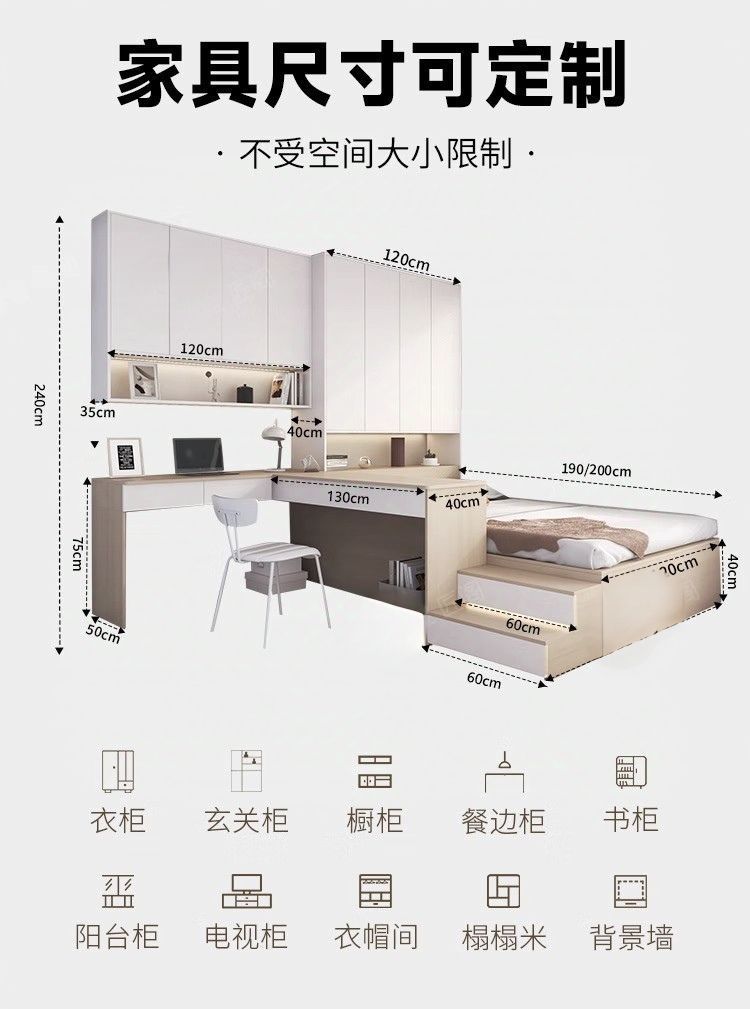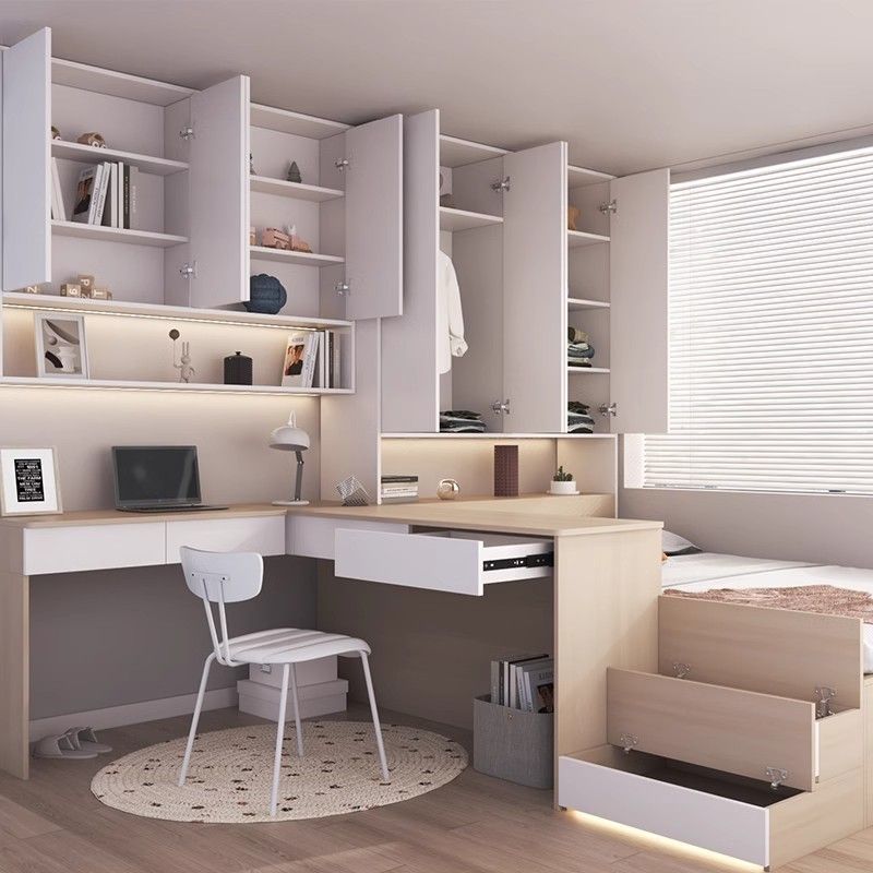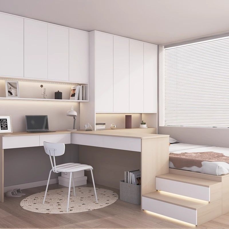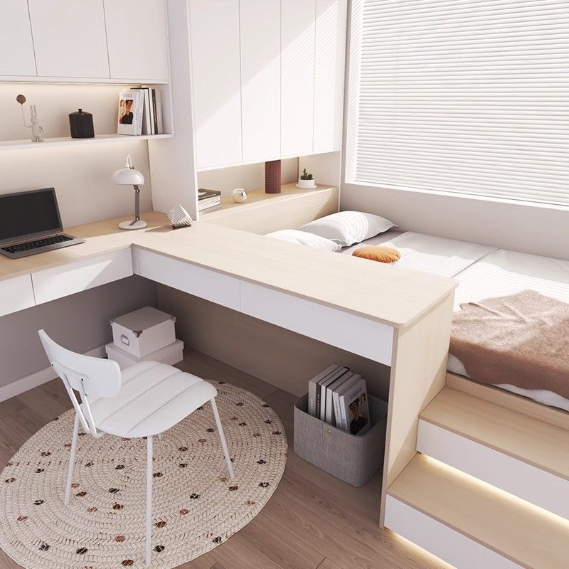 Маленькая квартира, встроенный шкаф, кровать, спальный гарнитур, угловой стол, настенный шкаф, мягкая сумка для хранения, татами-кровать