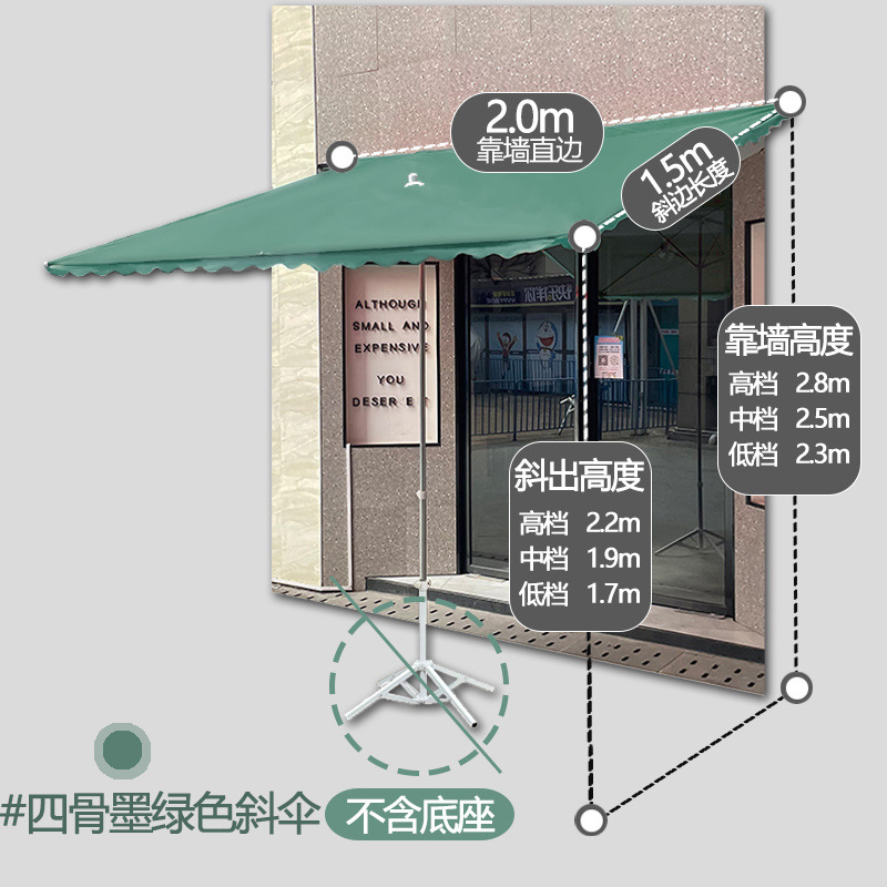 Уличный зонтик для уличных ларей, квадратный наклонный зонт, зонт от солнца, навес для магазинов, прочный и утолщенный.
