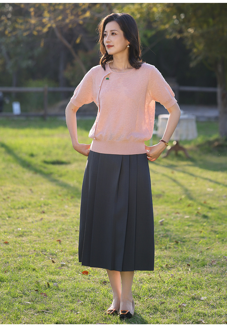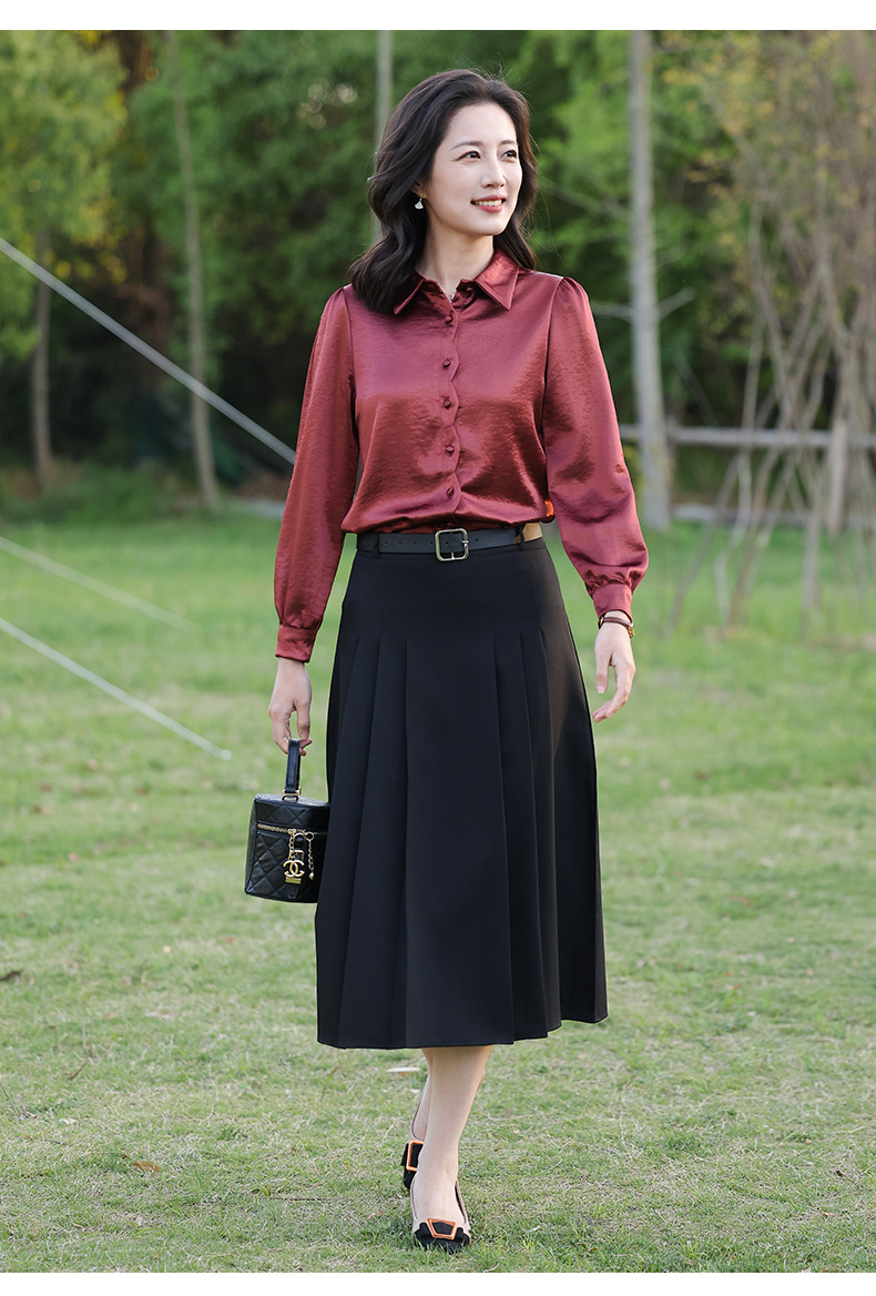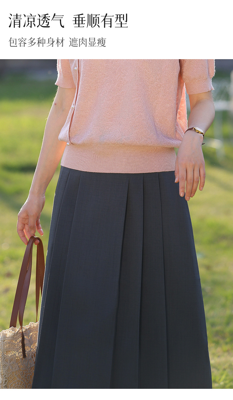 Qianbai Yilian плиссированная юбка 2025 новая черная юбка-зонтик дизайн юбка трапециевидной формы рабочая одежда элегантная длинная юбка лето