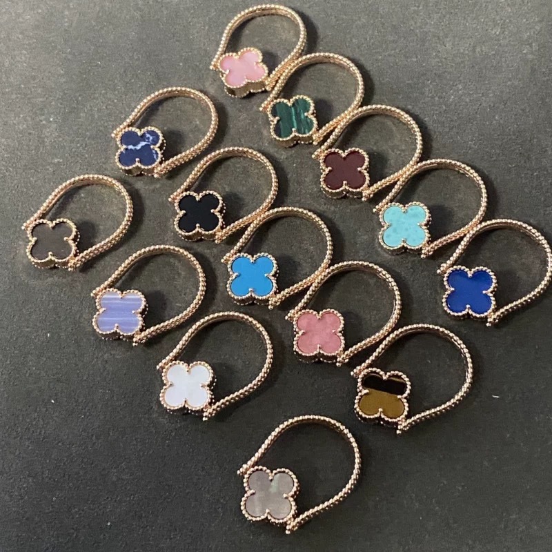 Новое модное и простое элегантное двустороннее кольцо с четырехлистным клевером из красного агата с лазером, двустороннее кольцо из розового золота 18 карат