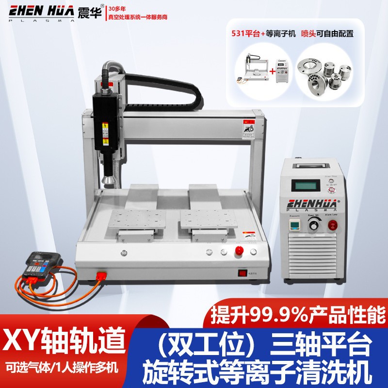 Трехосевая плазменная очистительная машина с атмосферным давлением, двухстанционная с платформой движения, модификация активации поверхности материала