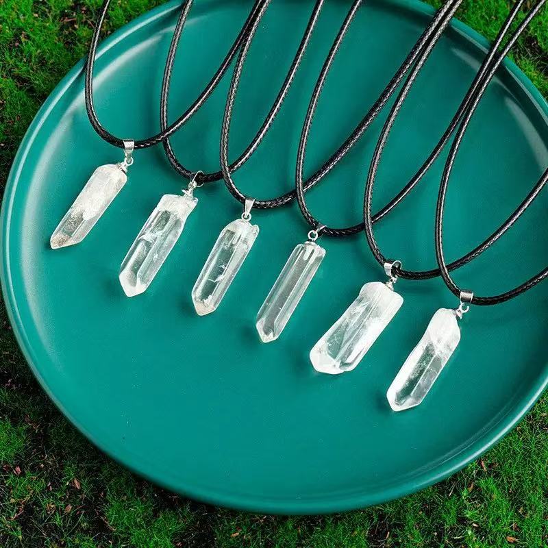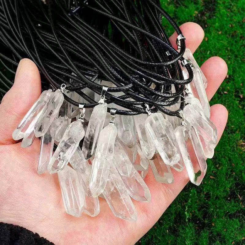Оптовая продажа с фабрики, натуральный белый кристалл, одиночный кристалл, шестиугольная призма, кулон, необработанный камень, полированный, размагничивающий энергетический кулон, ювелирные изделия