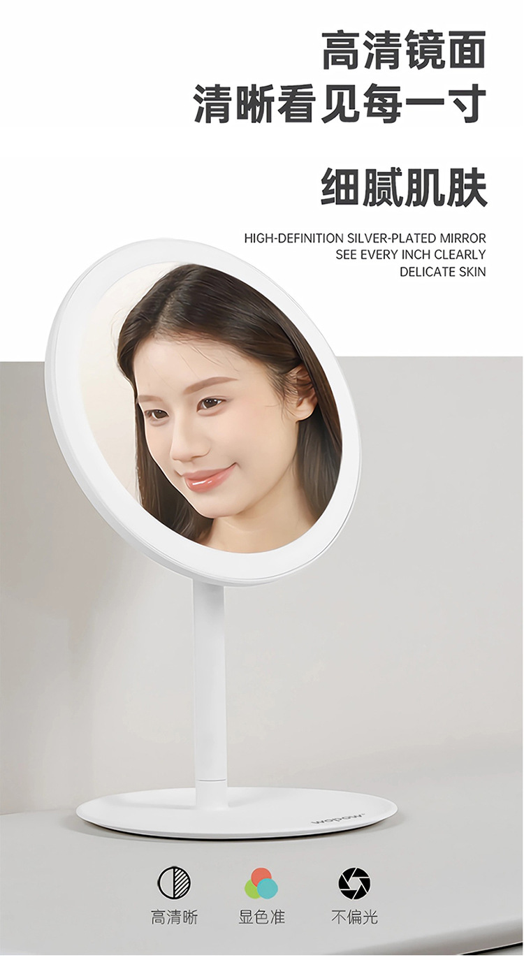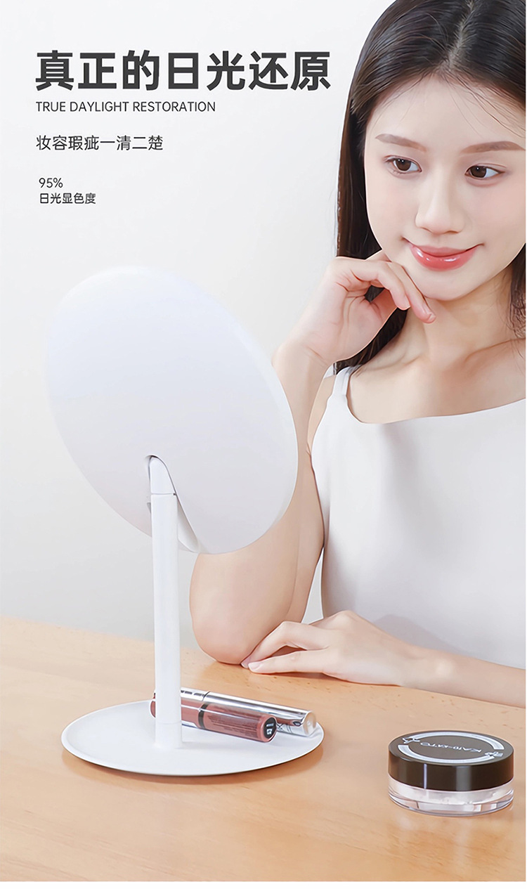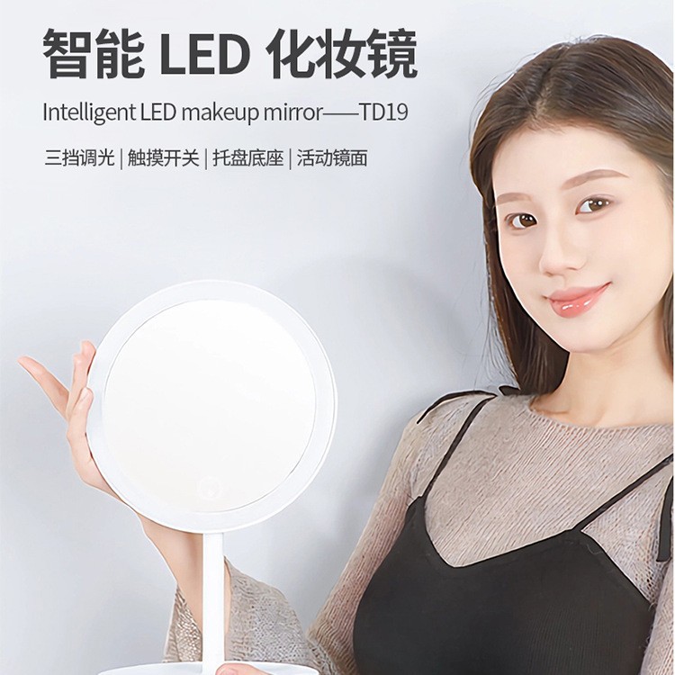 Зеркало для макияжа Wopin компактное, портативное и имеет длительное время автономной работы. Косметическое зеркало с подсветкой и заполняющим светом, студенческое зеркало, светильник TD19, белый