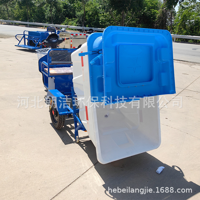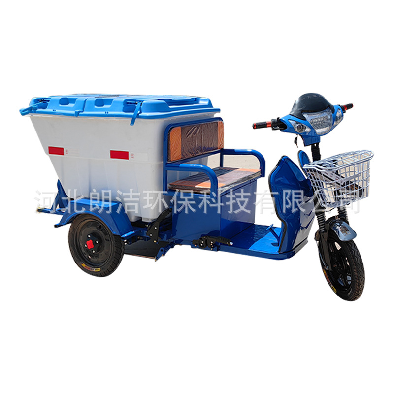 Электромобиль для сбора мусора, санитарный автомобиль на новых источниках энергии, трехколесный уборочный автомобиль с большим белым ведром на 500 л.