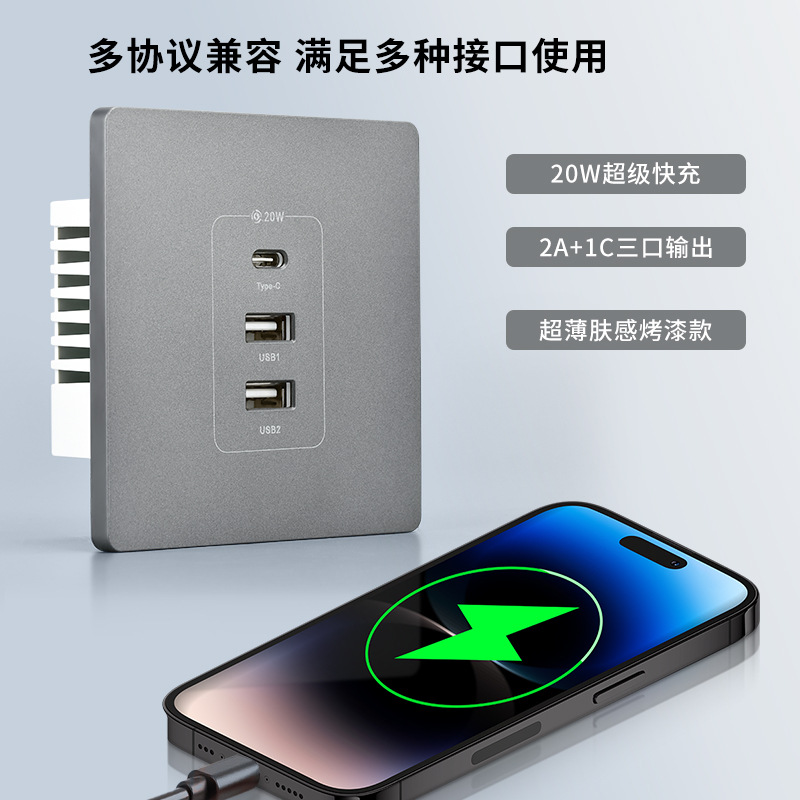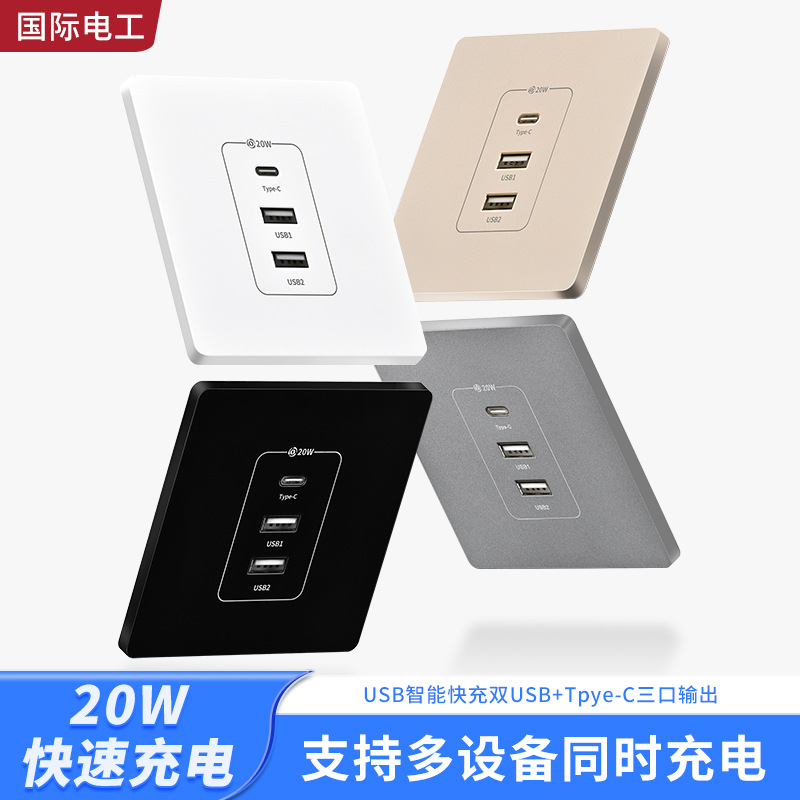 Международный электрик, сверхбыстрая зарядка, 20 Вт, USB-разъем типа C, трехпортовый, 220 В, бытовая зарядка, мощная белая вилка.