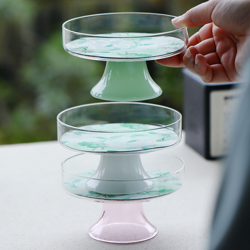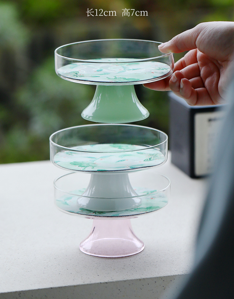 Фруктовая тарелка из боросиликатного стекла, тарелка для конфет в чайном домике, тарелка для закусок, тарелка для дыни и фруктов, новое украшение для тарелки для закусок