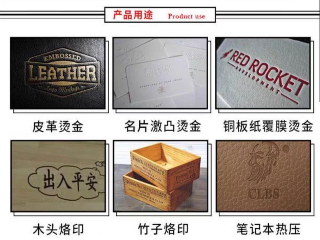 - 皮革制品:在皮具表面烫印品牌标识、花纹等,增强品牌辨识度和产品美观度,如皮包、皮鞋、皮衣等。