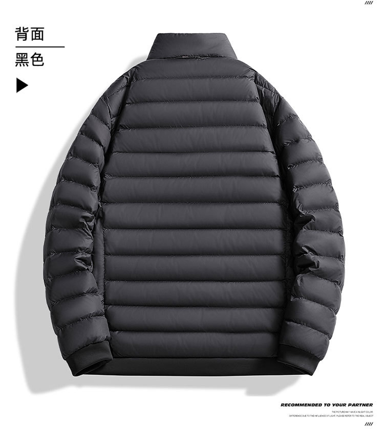 Оптовые мужские и женские пуховики, черный цвет, осенне-зимняя новинка, короткий воротник-стойка, тонкая и легкая пуховая подкладка 2518