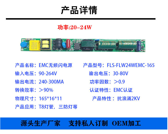 Изолированный источник питания лампы без мерцания, 1,5 м, 24 Вт, сертифицированный гармонический THD менее 10%, экспортная специальная лампа