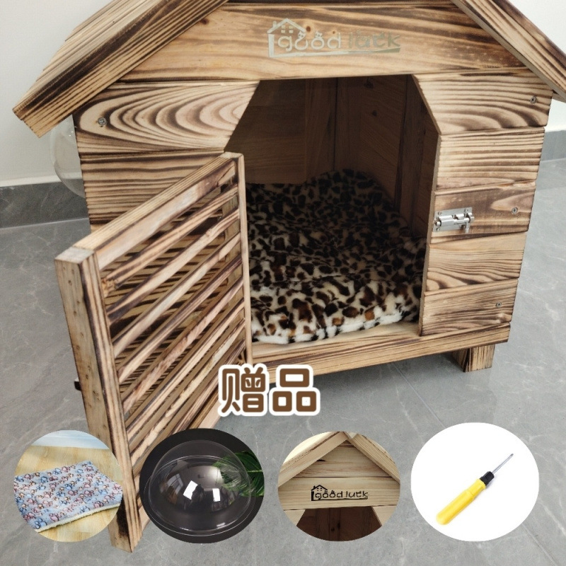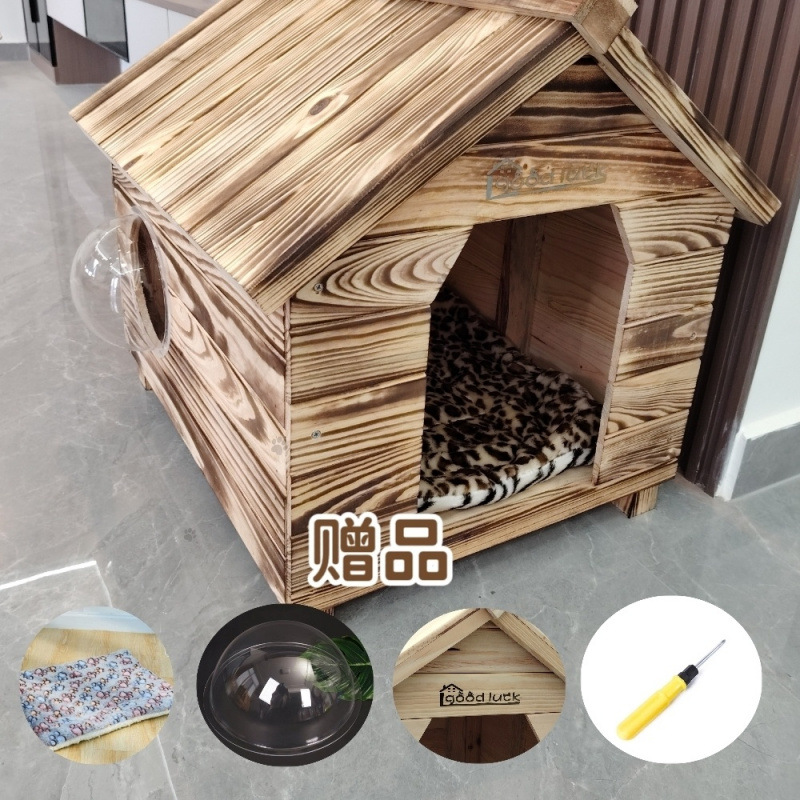 Собачий домик и кошачий домик из цельного дерева, водонепроницаемый в помещении и на улице, универсальный кошачий домик и собачий домик на четыре сезона, роскошная вилла для домашних животных, можно отправлять от имени других людей.