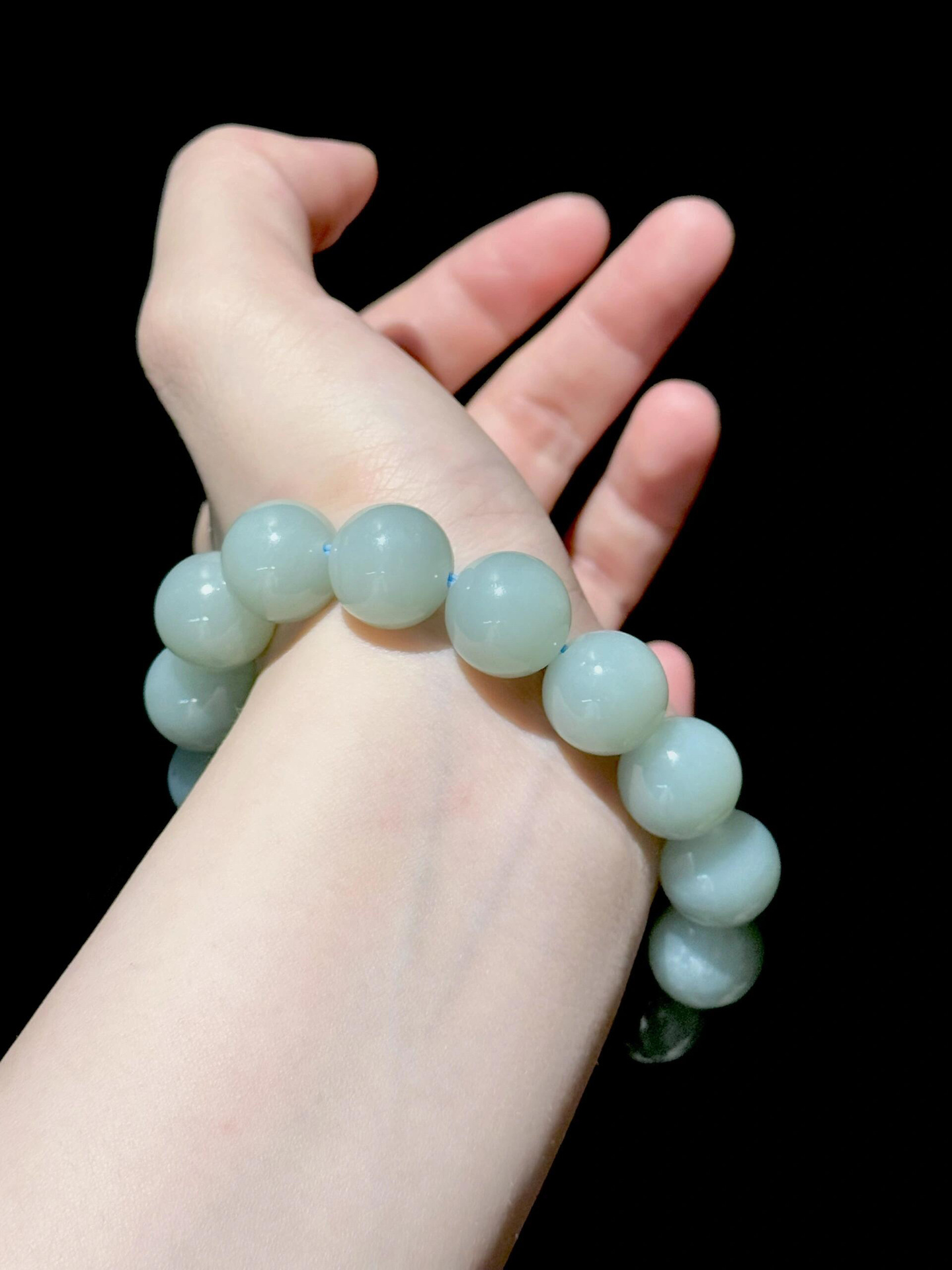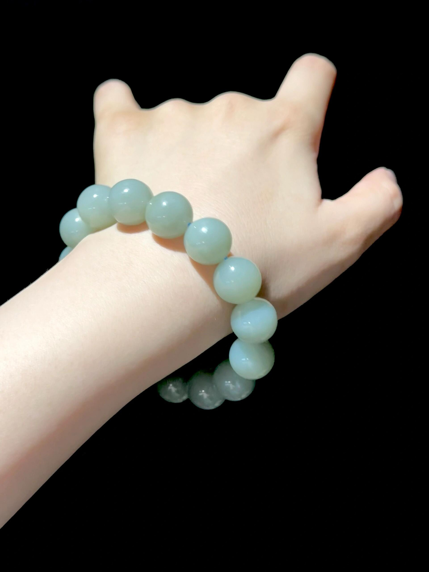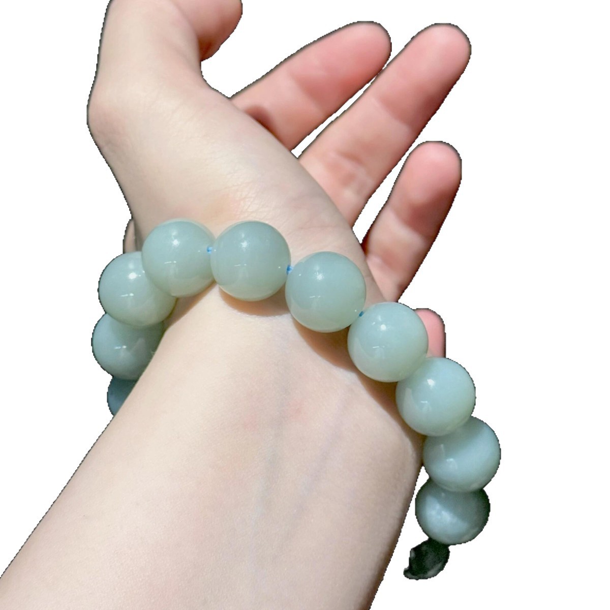 Молочно-синий ~ нефрит Хэтян Циэму синий 12 мм круглый бусинный одинарный круглый простой браслет на веревке глянцевый теплый и мягкий нефрит оптом