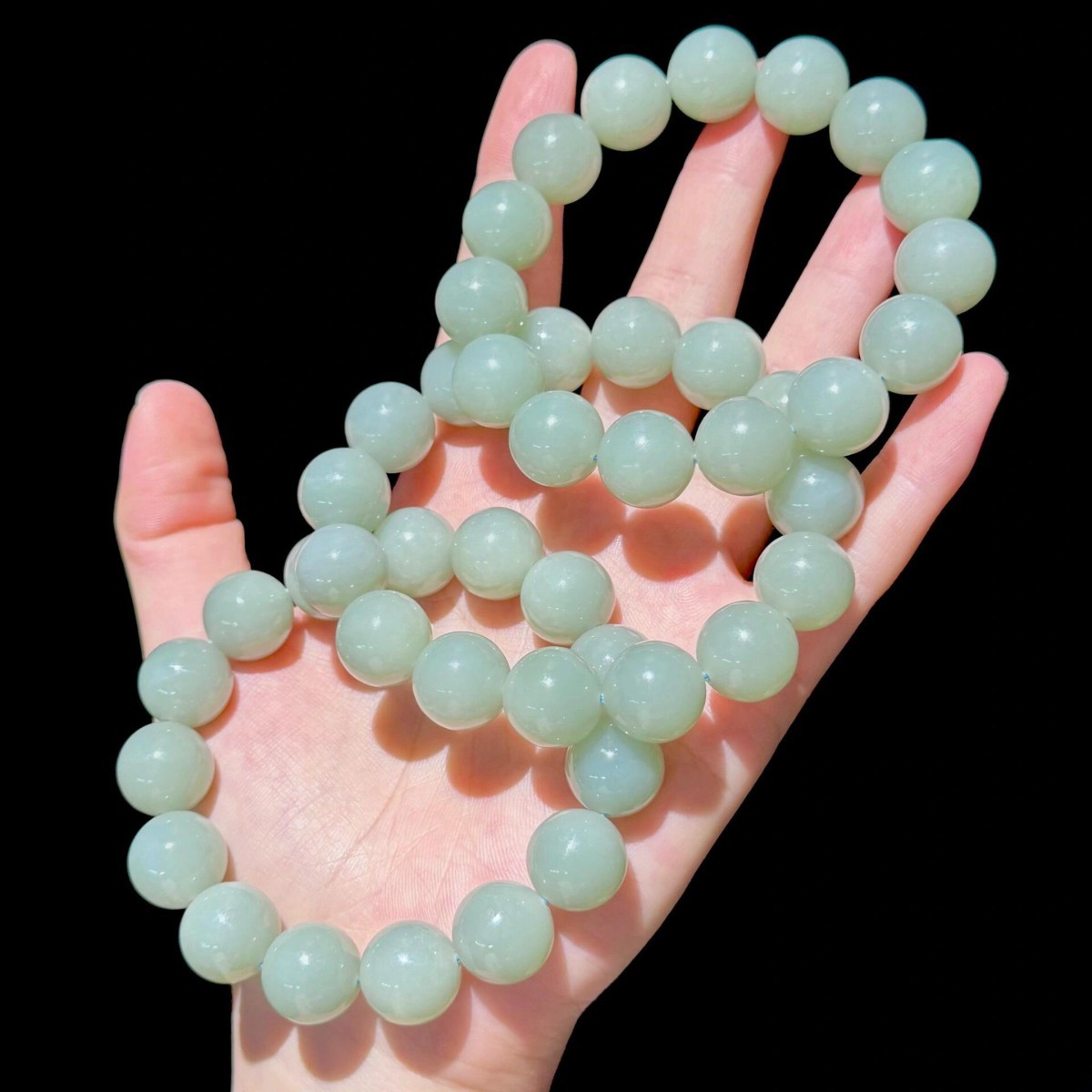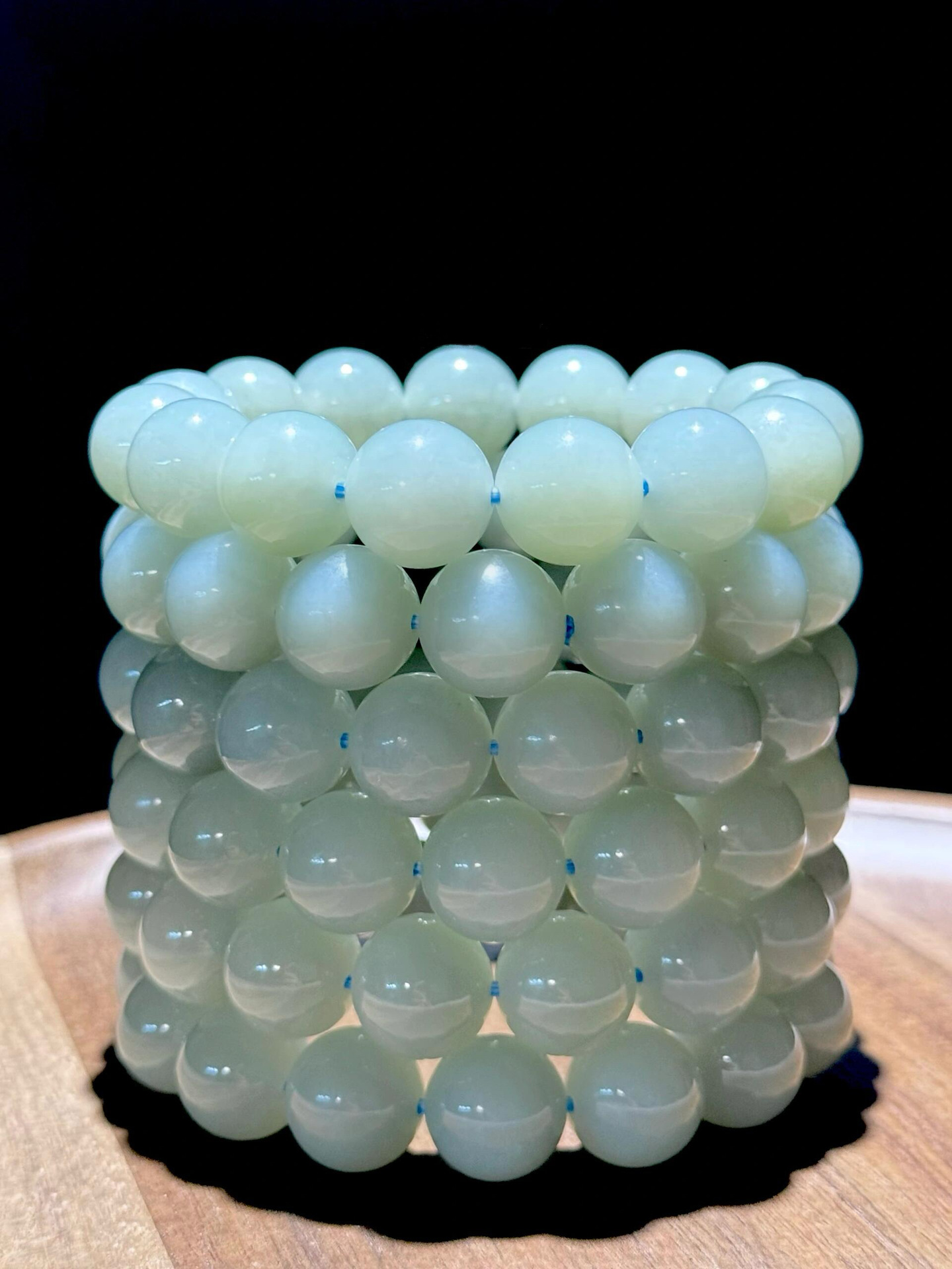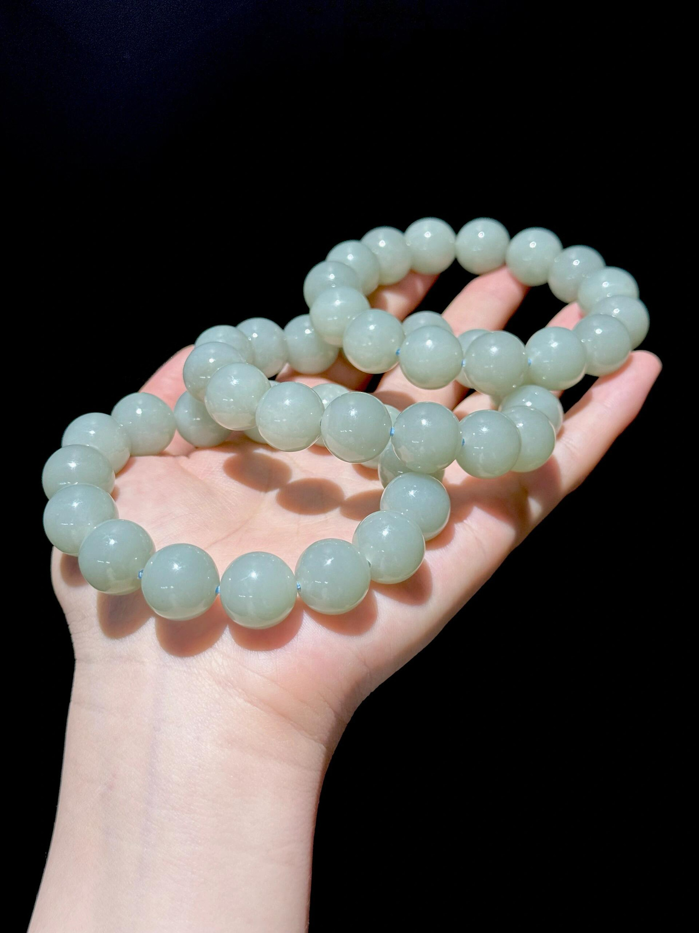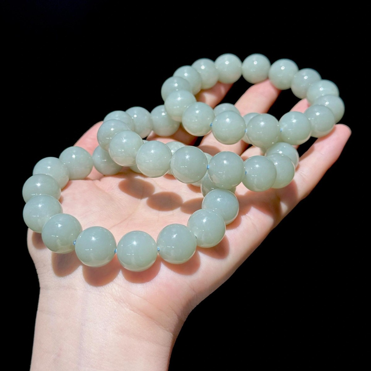 Молочно-синий ~ нефрит Хэтян Циэму синий 12 мм круглый бусинный одинарный круглый простой браслет на веревке глянцевый теплый и мягкий нефрит оптом