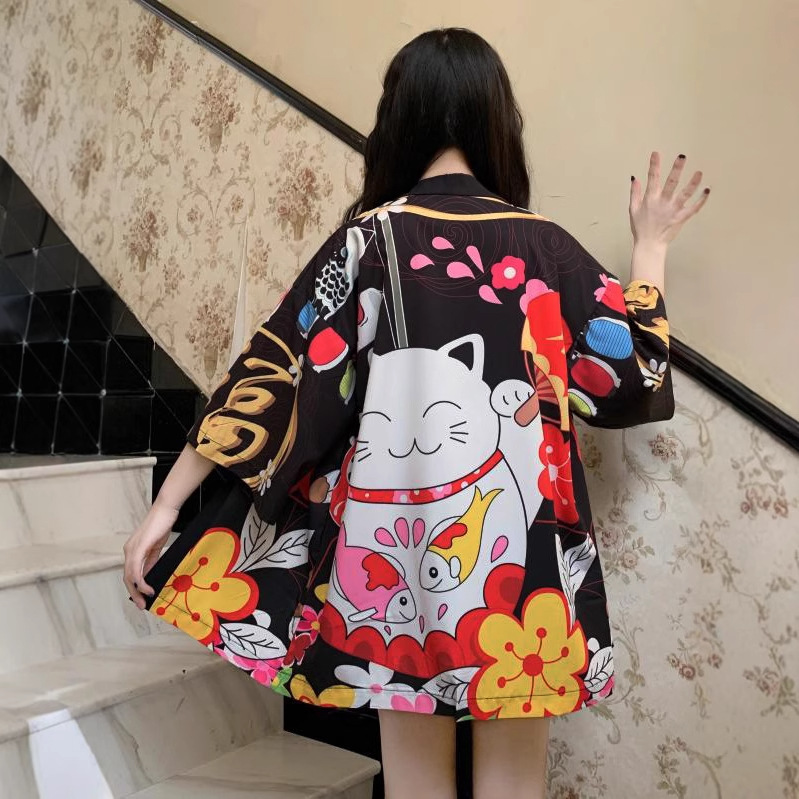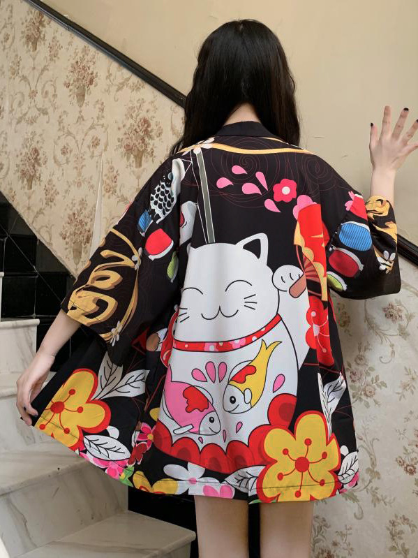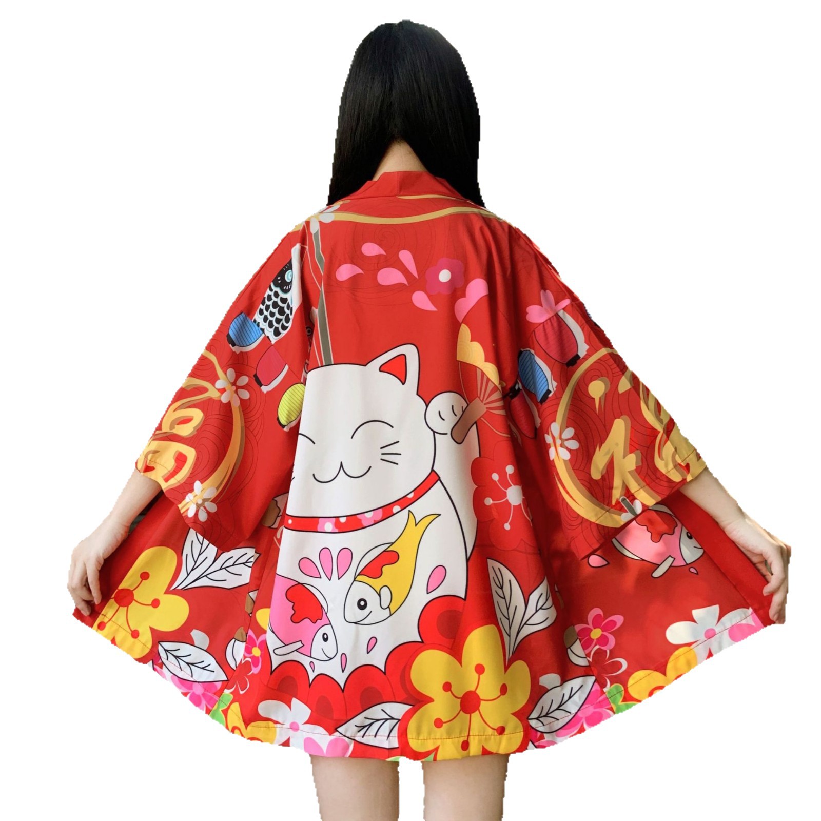 Мультфильм аниме Lucky Cat милый большой красный кардиган с перьями тонкое пальто летняя солнцезащитная одежда накидка кардиган кимоно