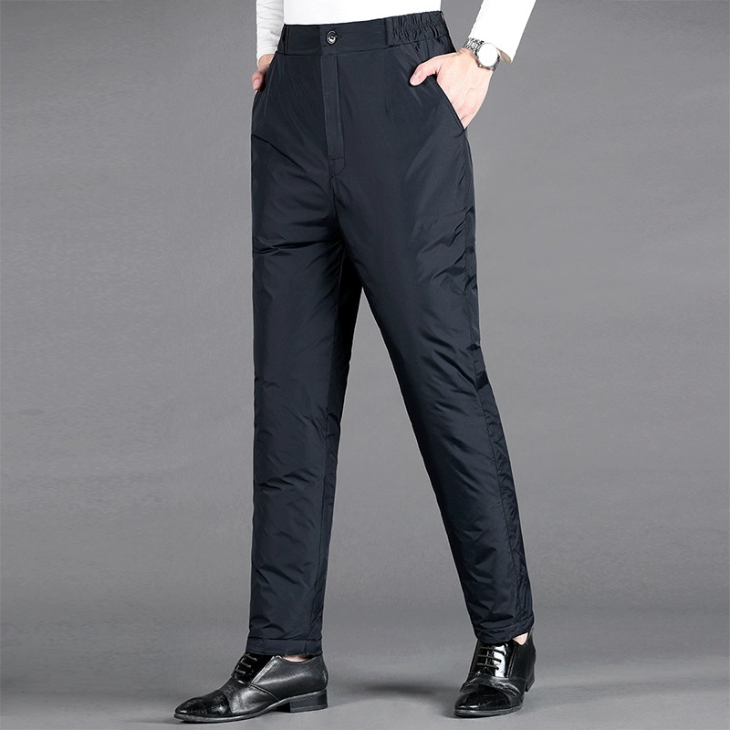 Женские пуховые брюки среднего и пожилого возраста для верхней одежды, прямые, свободные, с высокой талией, уличные, морозостойкие, облегающие хлопковые брюки на белом утином пуху, большие размеры