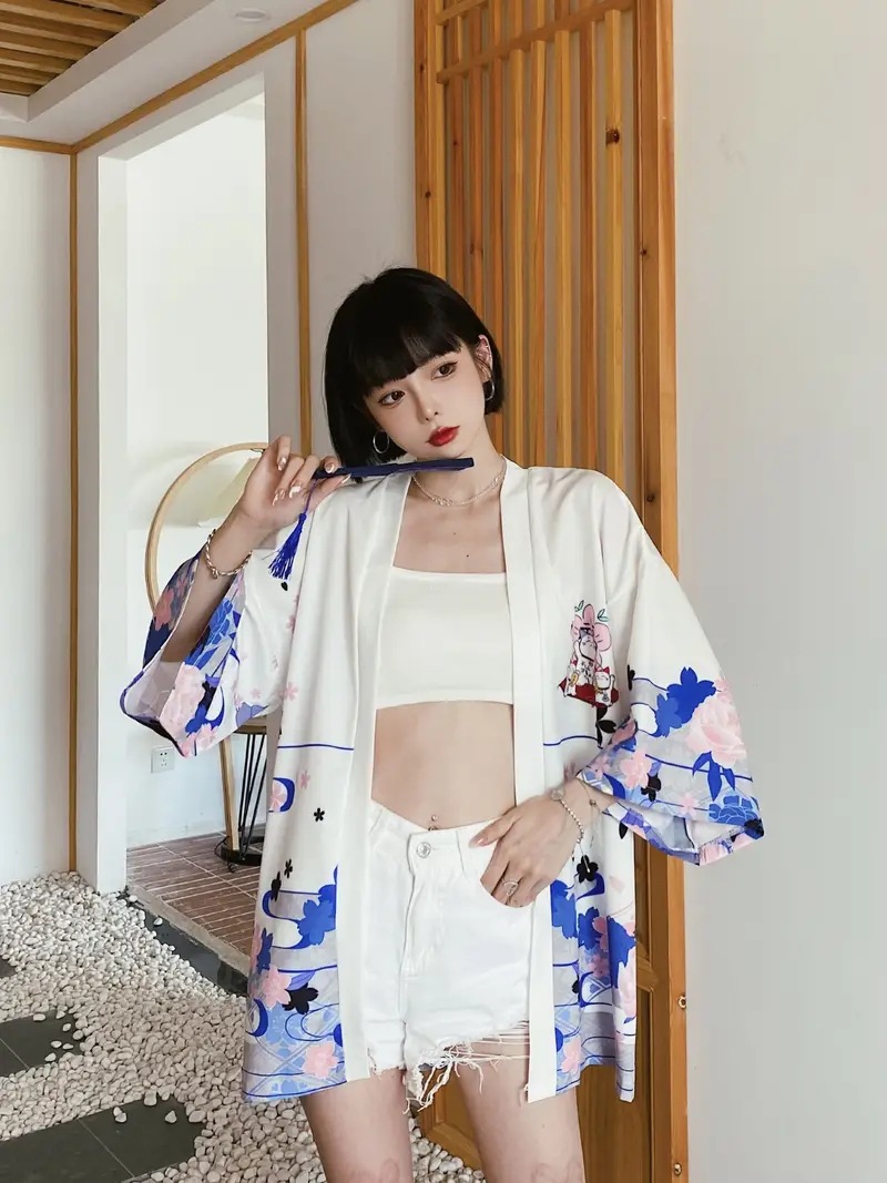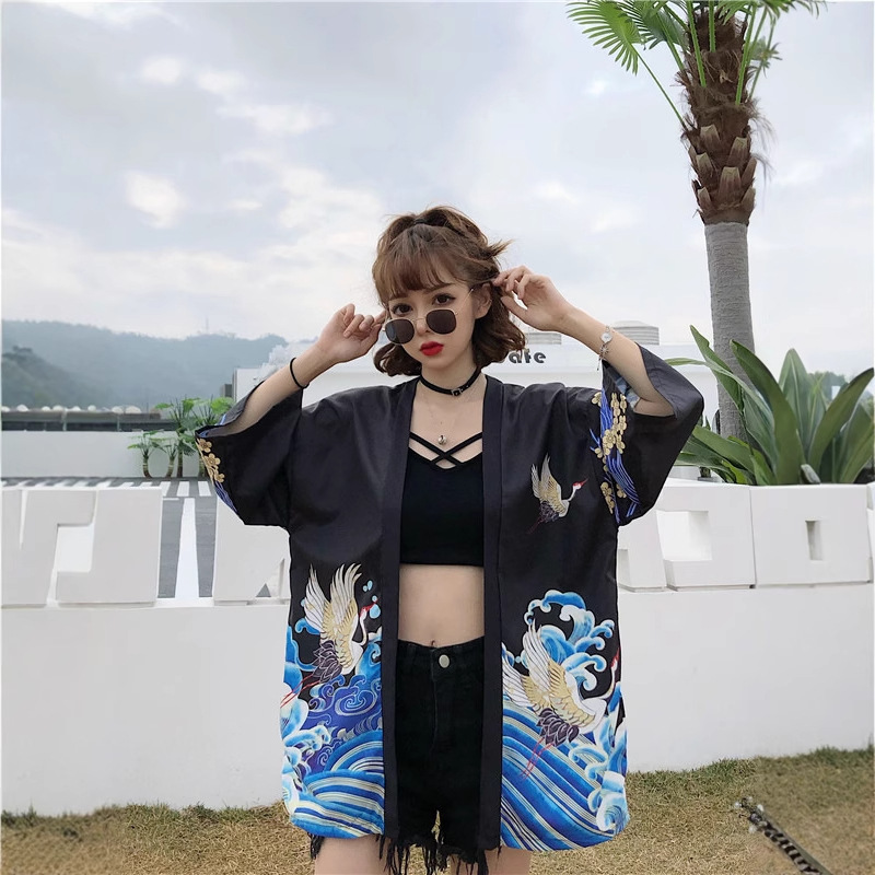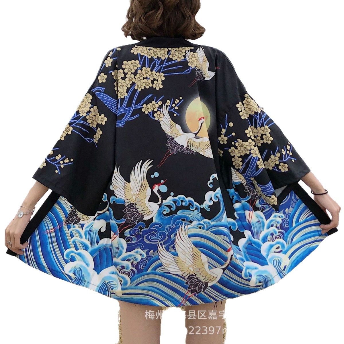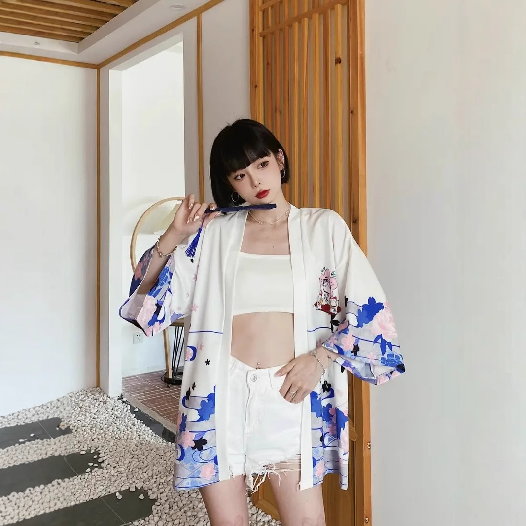 Китайский стиль, ретро-кардиган для пар, кимоно для мужчин и женщин, свободный халат Ukiyo-e с рукавами три четверти, рубашка хаори