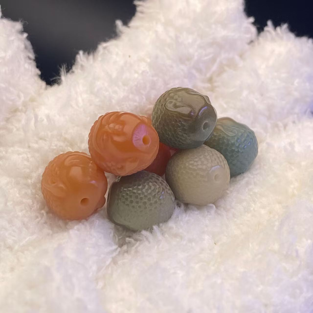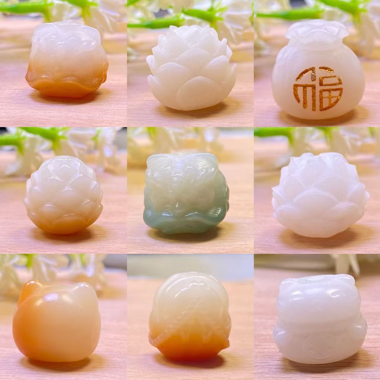 12 мм белый нефритовый кошачий коготь; 12 мм углеродные обожжённые кошачьи когти; Выветрившиеся кошачьи когти диаметром 12 мм (случайным образом распределены в темных и светлых цветах); Изношенный кот 12 мм (распределен случайным образом в темных и светлых цветах); Зеленый кошачий коготь 12 мм.; Кошачьи когти Duobao диаметром 12 мм (случайным образом распределены в темных и светлых цветах); 12-миллиметровый счастливый кот на углеродном пирожке; 12 мм белый нефрит счастливый кот; Белый лев 12 мм.; 12 мм выветрившийся лотос; Зеленый плавающий лотос 14-15 мм (распределен случайным образом в темных и светлых тонах); 20 мм карбоновый обожженный лотос; 12 мм выветрившийся хурма Руйи; Маленький османтус толщиной 10 мм.; Маленький османтус диаметром 10 мм, обжаренный на углях; Изношенная голова Будды диаметром 12 мм.; Небольшой колокольчик диаметром 12 мм.; Голова Будды из белого нефрита диаметром 12 мм.; 12 мм белый нефрит красный глаз пробуждение льва; 17 мм белый нефритовый мешочек на удачу; 12 мм выветрившийся бергамот; Камелия, обжаренная на углях, 13 мм; Уход за медведем из обожженного карбона толщиной 17 мм; 12 мм выветрившийся Будда Майтрейя; 16 мм красный глаз, обжаренный на углероде белый кролик; Восьмопалец осьминога размером 11 мм (случайным образом распределены в темных и светлых цветах); Голова Будды Duobao 12 мм (случайный цвет); Маленький османтус из белого нефрита 10 мм; 12 мм белый нефритовый тигр; 16-миллиметровая безфазная кошачья голова с углеродным пирожжим; 12 мм Дуобао Усян; Бергамот из белого нефрита 16 мм.; Выветрившаяся голова Будды диаметром 16 мм.; 12 мм сыр (случайно распределён в оттенках); 12 мм выветриваемая свинья Баджи; Лотос из белого нефрита 18 мм.; Лев 12 мм на углеродном пирожке; Зеленая голова Будды диаметром 12 мм (случайное распределение оттенков); 12 мм выветрившийся счастливый кот; Медведь из белого нефрита диаметром 17 мм; 12мм Duobao Lotus (распределены случайным образом по оттенкам); 12 мм белый нефритовый лотос; Выветрившаяся голова тигра диаметром 12 мм.; 12 мм белый нефрит с зелёным глазком; 16 мм зеленый плавающий цветок пробуждение льва; 20 мм резной лотос; 16 мм выветрившийся бергамот; Бергамот из белого нефрита 12 мм.; Бергамот, обжаренный на угле, 16 мм; Лев 16 мм на углеродном пирожке; 20 мм мелко вырезанный угольный лотос; 12 мм маленькие бусины из белого нефрита; 16 мм белый лев; 12 мм Персиковый Руйи, приготовленный на углях; Белый нефрит «Благоприятные облака»; Белые бусины из нефрита в форме тыквы; 12 мм белый нефрит, маленький лев