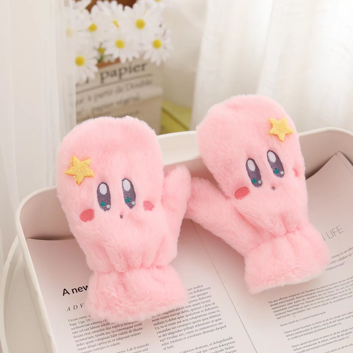Милые перчатки Кирби, шапки, шарфы, зимние плюшевые теплые розовые девчачьи шарфы с сердечками для защиты девочек от холода.
