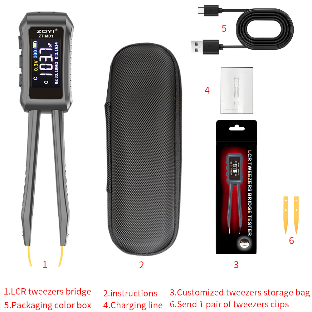 ZOYI Интеллектуальный цифровой LCR-пинцетный мост ZT-MD1 Чип-резистор Индуктивность Конденсатор Тест компонентов