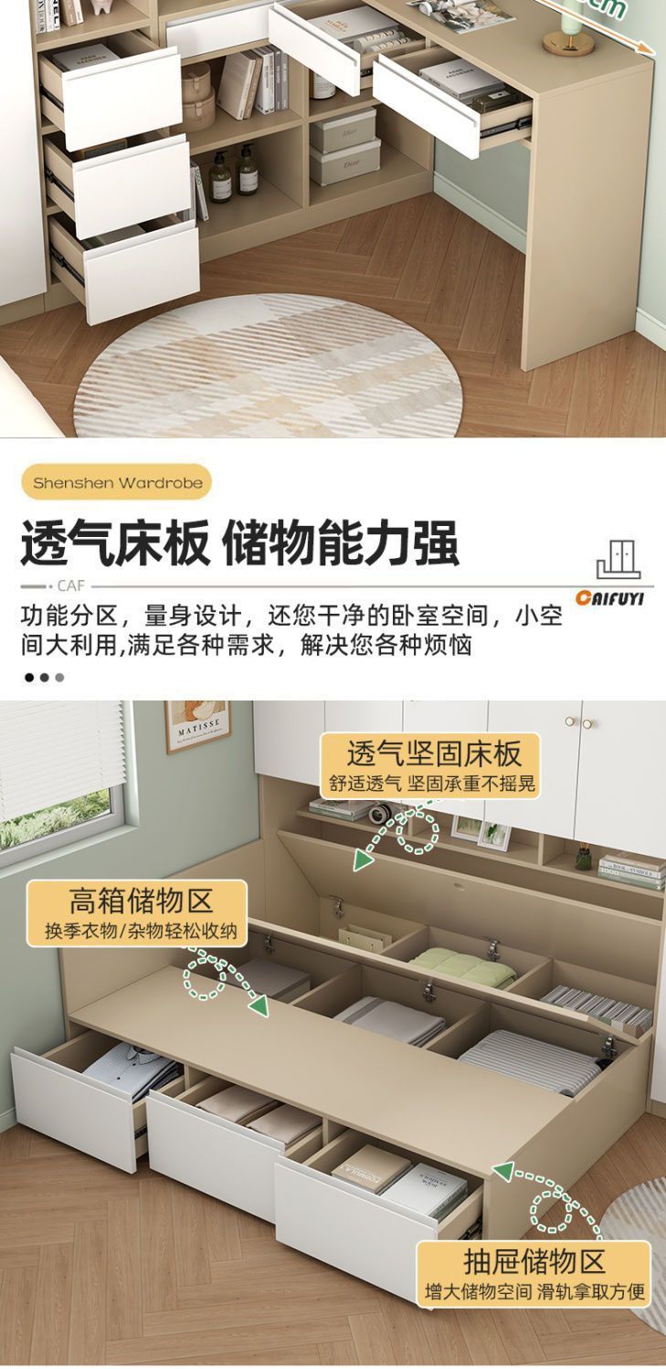 Татами кровать с встроенным шкафом, детская кровать для маленькой квартиры, многофункциональный шкаф для хранения в спальне, комбинированный гардеробный шкаф-кровать