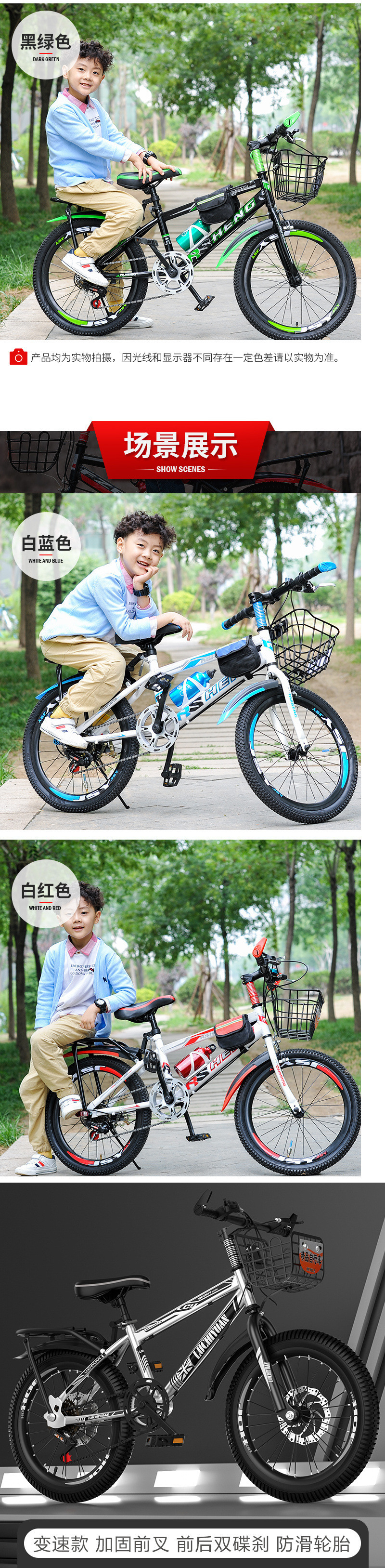 Односкоростной черный красный + стандартная версия; Односкоростной черный красный + люкс-версия; Односкоростной черный и красный + люкс-версия + задняя стойка + корзина; Односкоростной черный синий + роскошная версия + задняя стойка + корзина; Односкоростной черный и зеленый + роскошная версия + задняя стойка + корзина; Односкоростной ярко-серебристый + роскошная версия + задняя стойка + корзина; Односкоростной королевский синий + роскошная версия + задняя стойка + корзина; Односкоростной Pretty Pink + люкс-версия + задняя стойка + корзина; Односкоростной белый синий + роскошная версия + задняя стойка + корзина; Односкоростной ослепительный цвет + роскошная версия + задняя полка + корзина; Переменная скорость черный красный + роскошная версия; Черный и красный с регулируемой скоростью + роскошная версия + задняя полка + корзина; Переменная скорость черный синий + роскошная версия + задняя стойка + корзина; Черный и зеленый с регулируемой скоростью + роскошная версия + задняя стойка + корзина; Ярко-серебристый с регулируемой скоростью + роскошная версия + задняя полка + корзина; Переменная скорость белый синий + люкс-версия + задняя стойка + корзина; Регулируемая скорость королевский синий + люкс-версия + задняя полка + корзина; Розовая с регулируемой скоростью + роскошная версия + задняя полка + корзина; Цветная регулируемая скорость + роскошная версия + задняя полка + корзина; Амортизация + односкоростная черно-красная + роскошь + полка + корзина; Амортизация + регулируемая скорость черный и красный + роскошь + полки + корзина; Дисковый тормоз односкоростной черный и красный + люкс + полка + корзина; Дисковый тормоз односкоростной черный и синий + люкс + полка + корзина; Дисковый тормоз односкоростной сапфировый синий + люкс + полка + корзина; Дисковый тормоз односкоростной красивый порошок + роскошь + полка + корзина; Дисковый тормоз односкоростной белый и синий + люкс + полка + корзина; Трансмиссия дискового тормоза черно-красная + люкс + полка + корзина; Дисковый тормоз с регулируемой скоростью, черный и синий + роскошь + полка + корзина; Трансмиссия дискового тормоза черно-зеленая + люкс + полка + корзина; Трансмиссия дискового тормоза ярко-серебристая + люкс + полка + корзина; Трансмиссия дискового тормоза сапфировый синий + люкс + полка + корзина; Дисковый тормоз с регулируемой скоростью, порошок + роскошь + полка + корзина; Трансмиссия дискового тормоза бело-синяя + люкс + полка + корзина; Трансмиссия дискового тормоза красочная + роскошь + полка + корзина; Амортизирующий дисковый тормоз односкоростной черный и красный + люкс + полка + корзина; Амортизирующая трансмиссия дискового тормоза черно-красная + люкс + полка + корзина; Амортизирующая трансмиссия дискового тормоза черно-синяя + люкс + полка + корзина; Односкоростной белый зеленый + стандартная версия