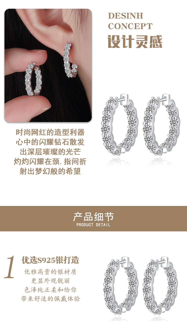 Европейские и американские трансграничные серьги из стерлингового серебра 925 пробы, высококачественные, полные бриллиантов, модные и универсальные, серьги в тяжелой промышленности, популярные серьги для прямой трансляции