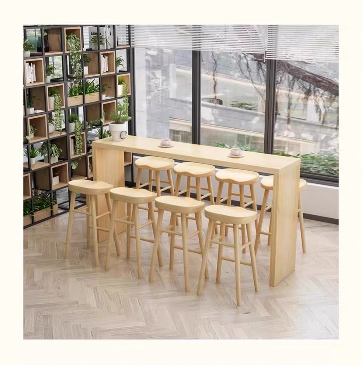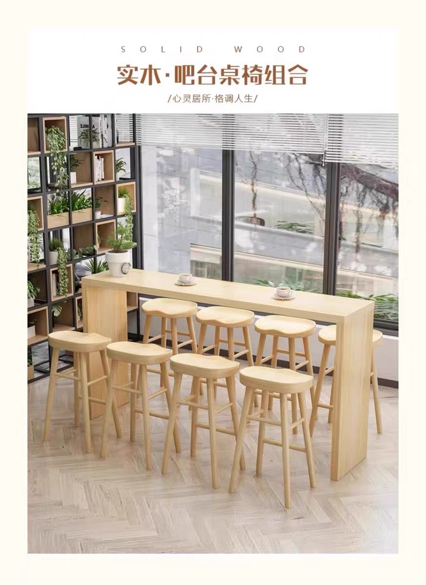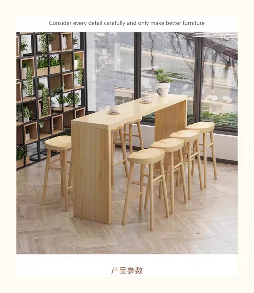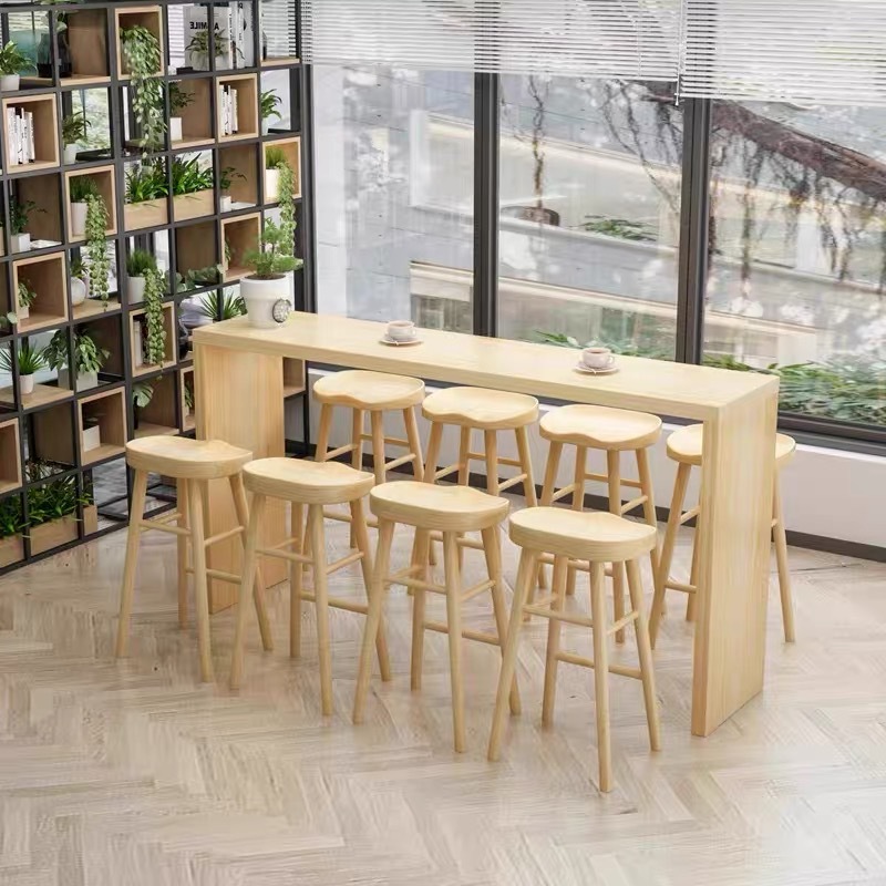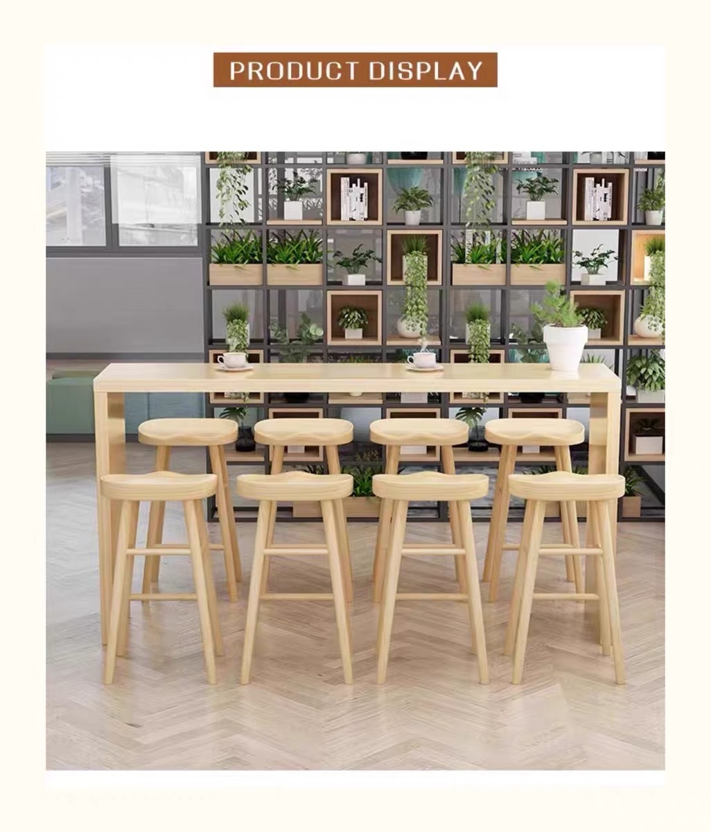 Современный простой барный стол и стулья для кафе, высокий барный стол прямоугольной формы из железа и массива дерева, многоместный журнальный столик