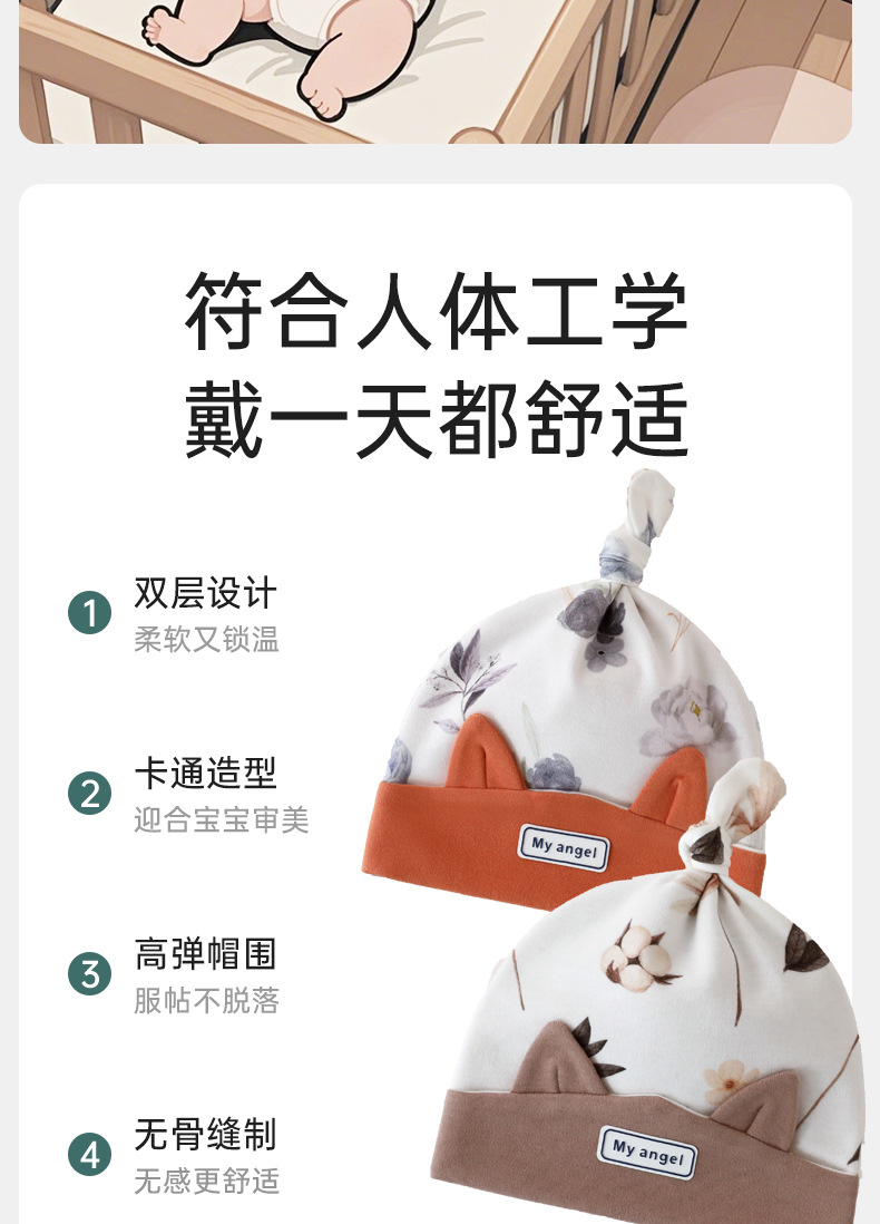 Детская шапочка для плода, весенне-осенняя двухслойная шапочка для новорожденных типа А, хлопковая шапочка для детей 0-3 месяцев, ветрозащитная защита фонтанеля