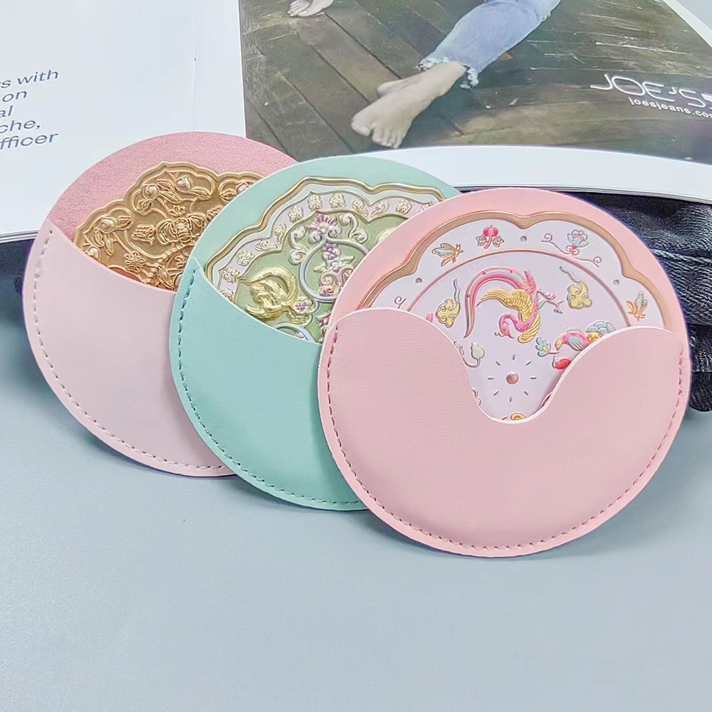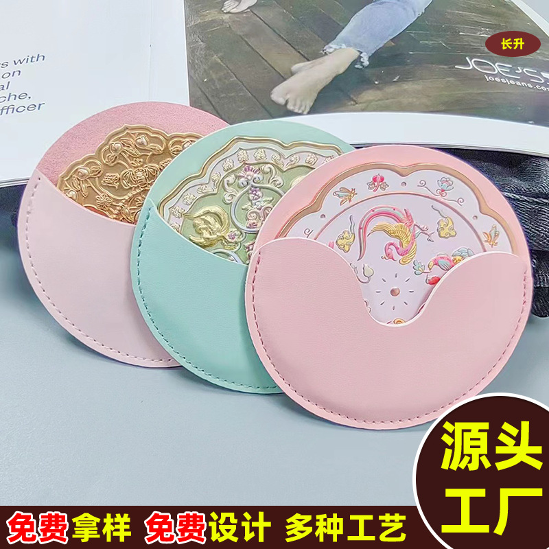 Популярный кожаный чехол для портативного круглого зеркала для макияжа, культурные и креативные туристические сувениры, подарки в национальном стиле, защитный чехол от падения.